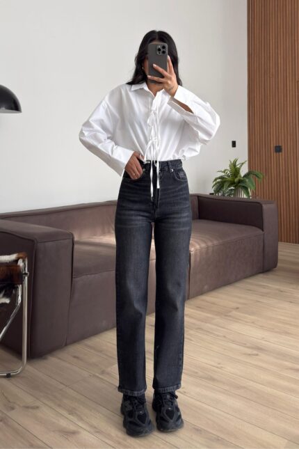 Çapraz Kemerli Wide Leg Füme Jean