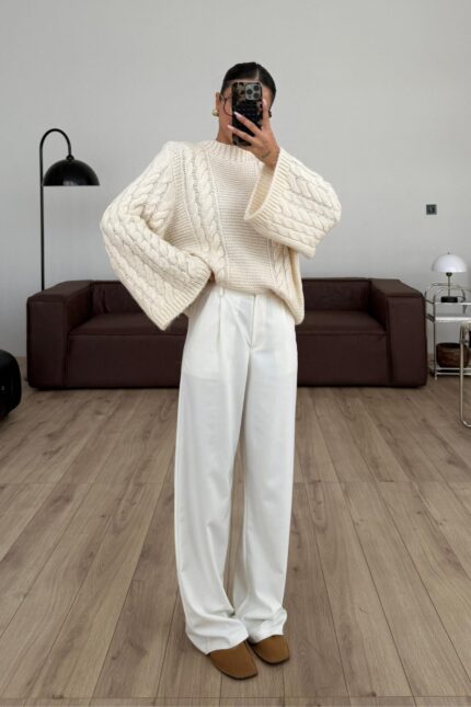Yüksek Bel Ekru Pantolon