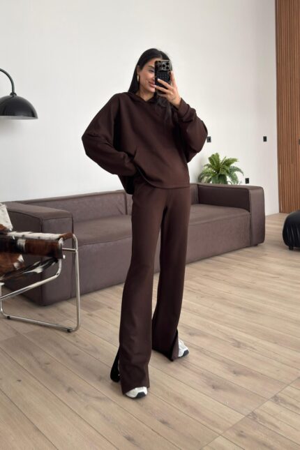 Kapşonlu Modal Kumaş Pantolon Takım Kahverengi