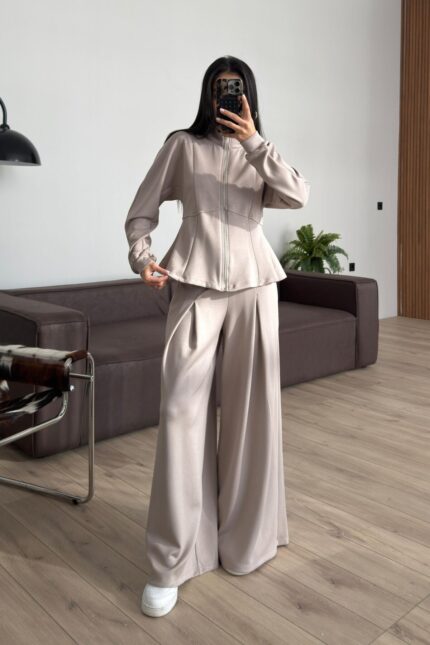 Pantolonu Pileli Bol Paça Hırka Takım Taş