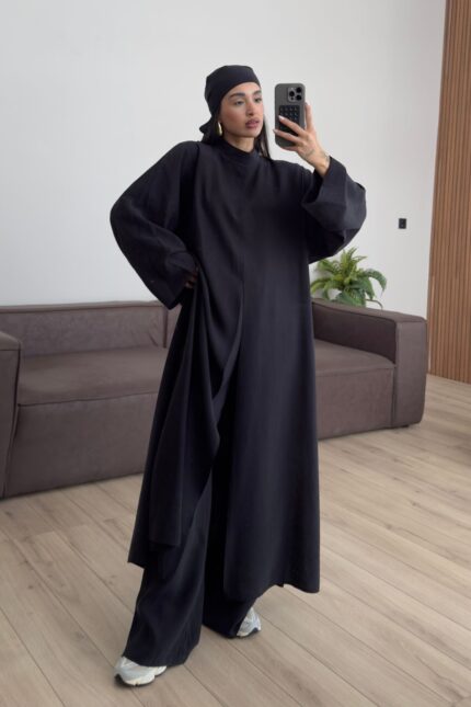 Tasarım Tunik Şallı Takım Siyah