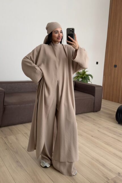 Tasarım Tunik Şallı Takım Bej