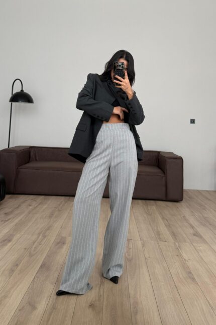 Beyaz Çizgili Pantolon Gri