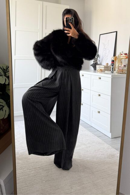 Gri Çizgili Palazzo Pantolon