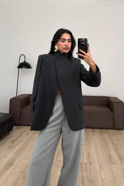 Tek Düğmeli Dik Yakalı Ceket Koyu Antrasit
