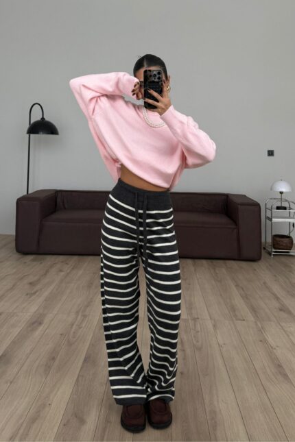 Çizgili Triko Pantolon Antrasit