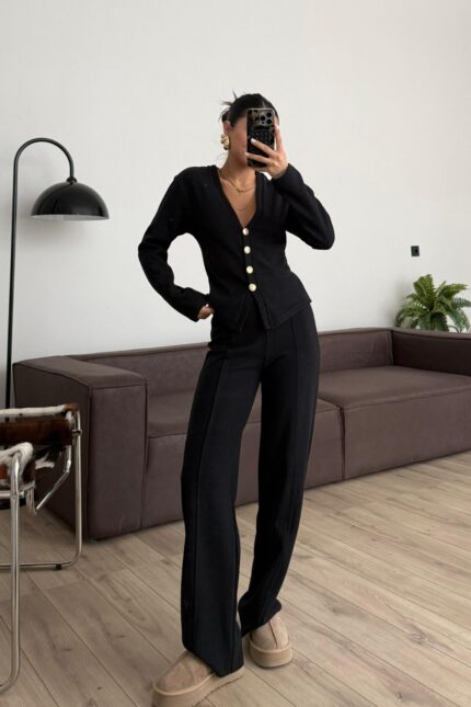 Balıkçı Yaka Uzun Kollu Bluz Siyah