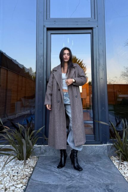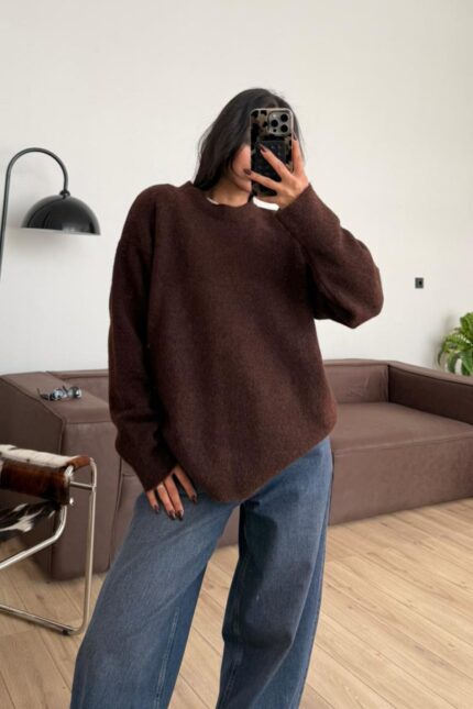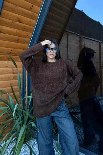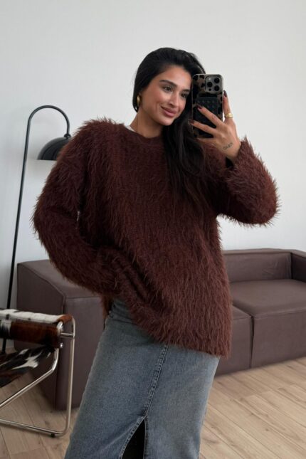 Yumuşak Tüylü Desenli Kazak Kahverengi