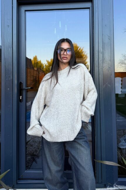 Fermuarlı Dik Yaka Örgü Hırka Bej