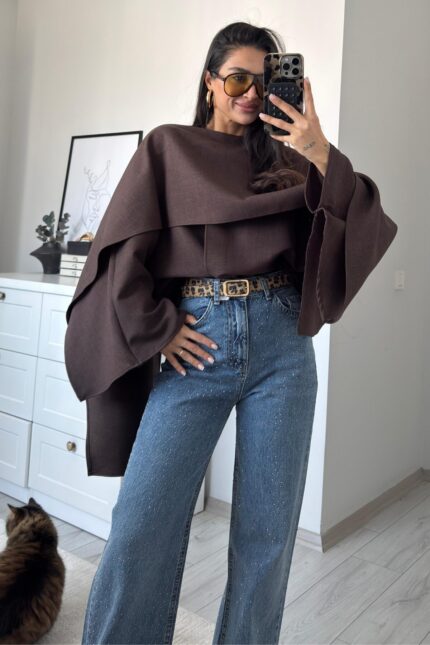 Pelerin Detaylı Tunik Acı Kahve