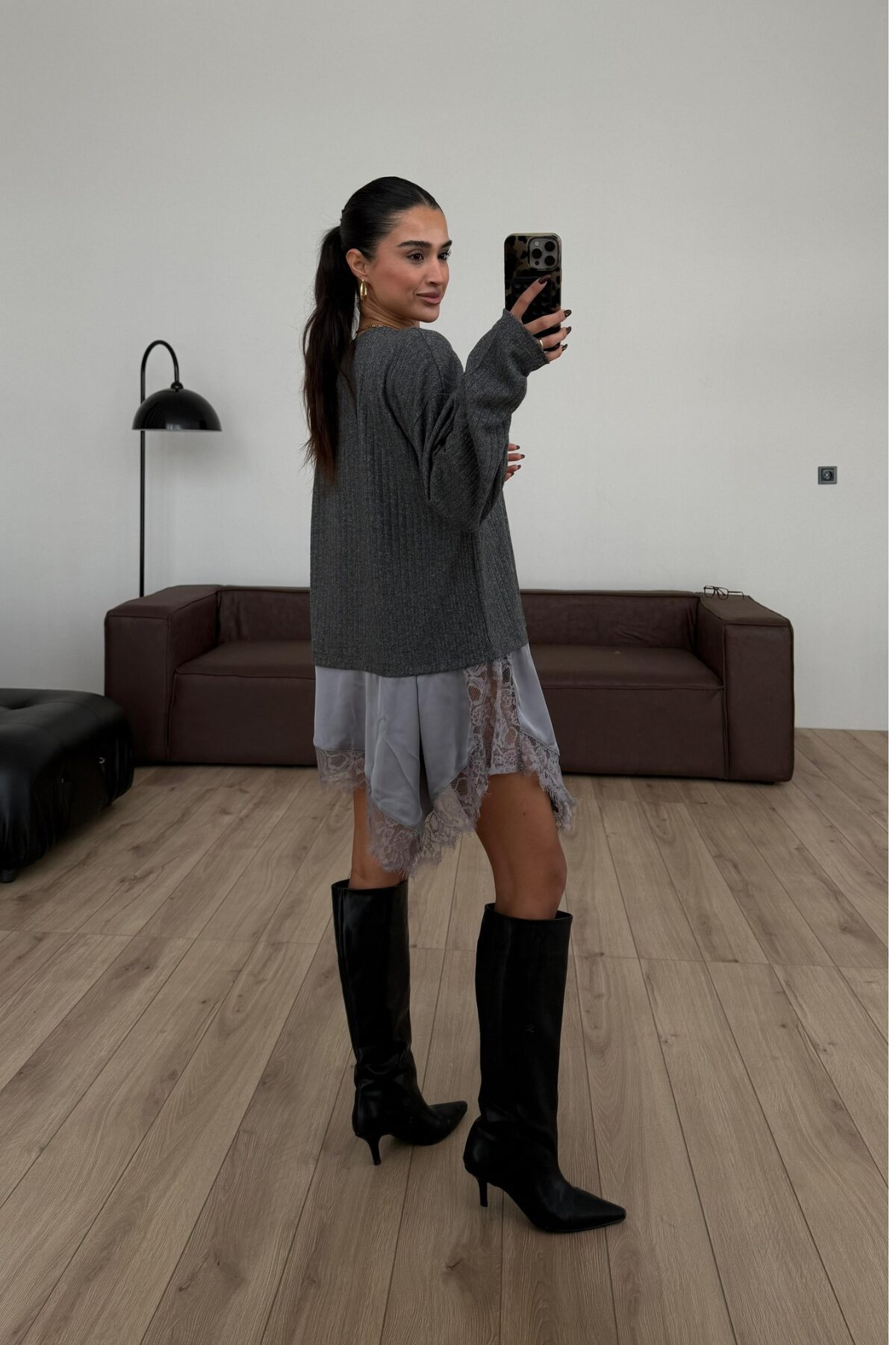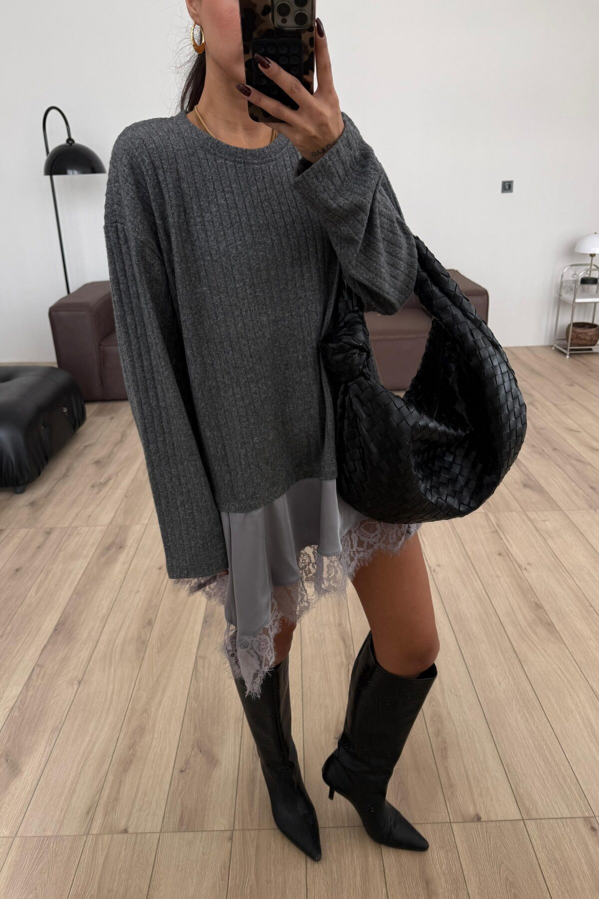 Asimetrik Kesim Güpürlü Bluz Antrasit