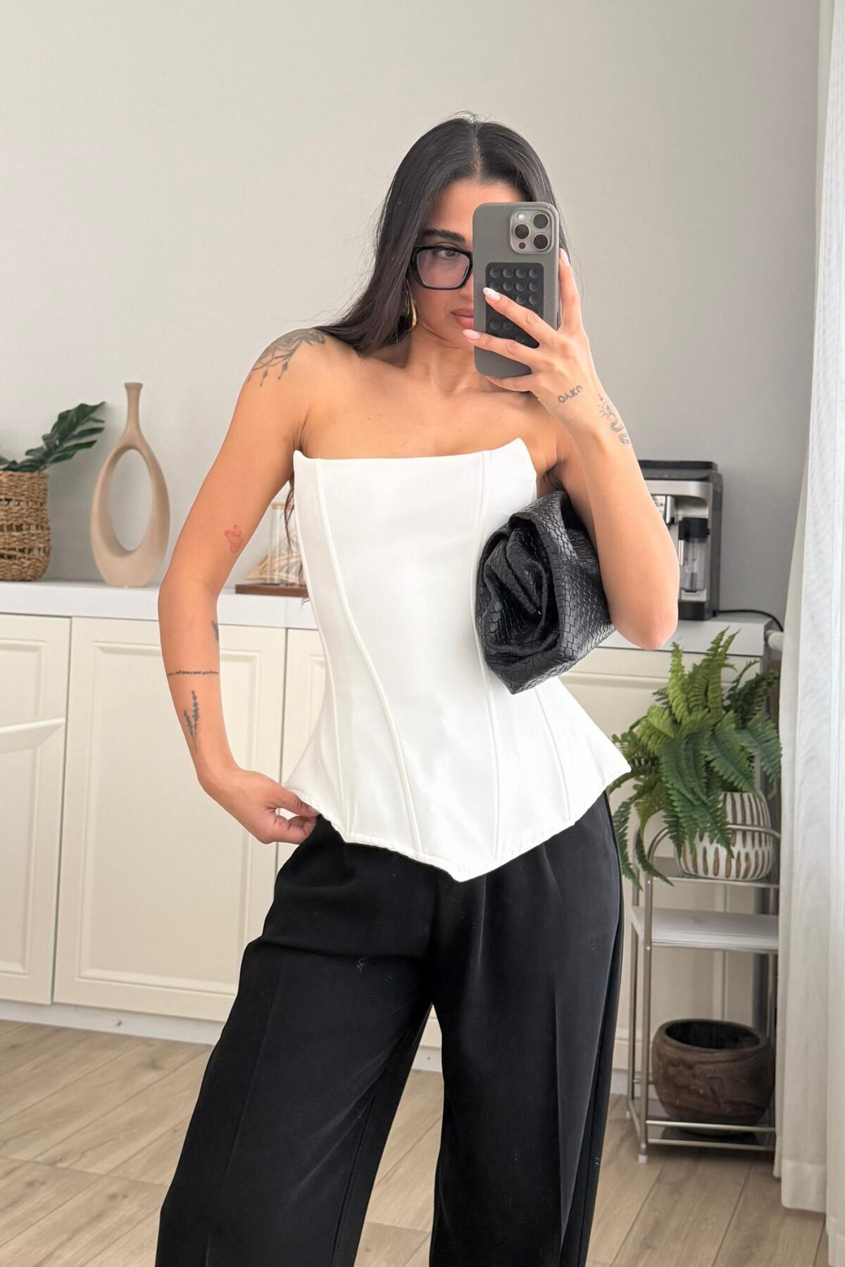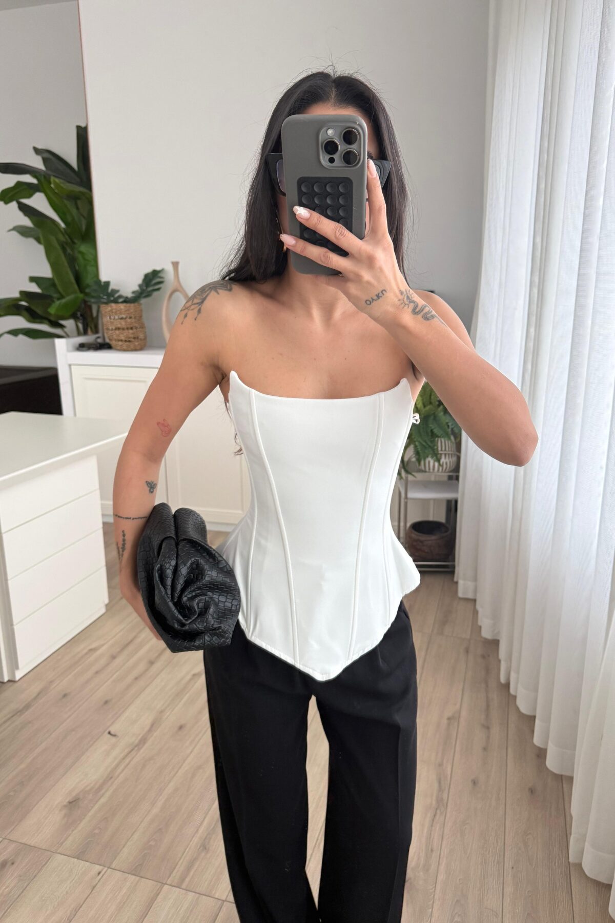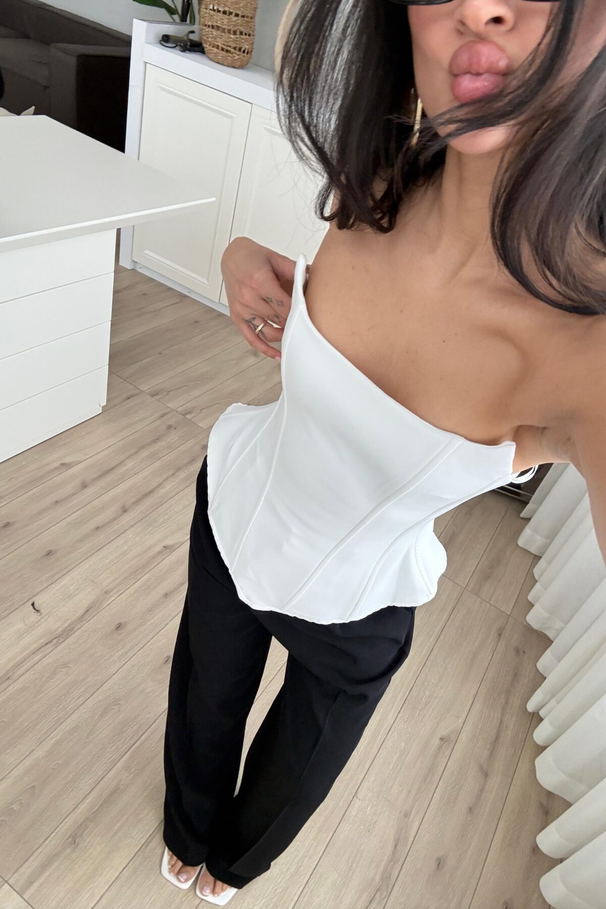 Balenli Straplez Bluz Beyaz