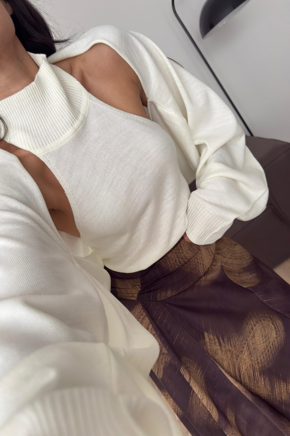 Bolerolu Boğazlı Sırtı Açık Bluz Ekru