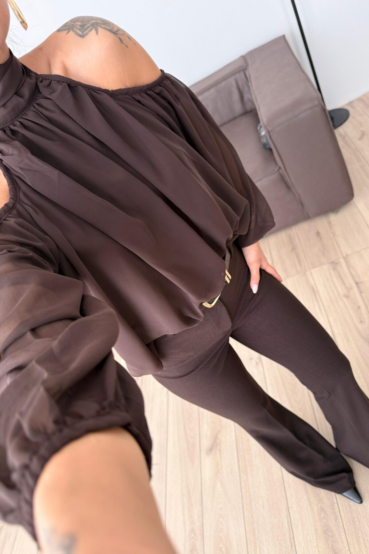 Şifon Boyundan Bağlamalı Bluz Kahverengi