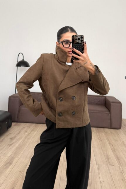 Kruvaze Kısa Süet Ceket Acı Kahve
