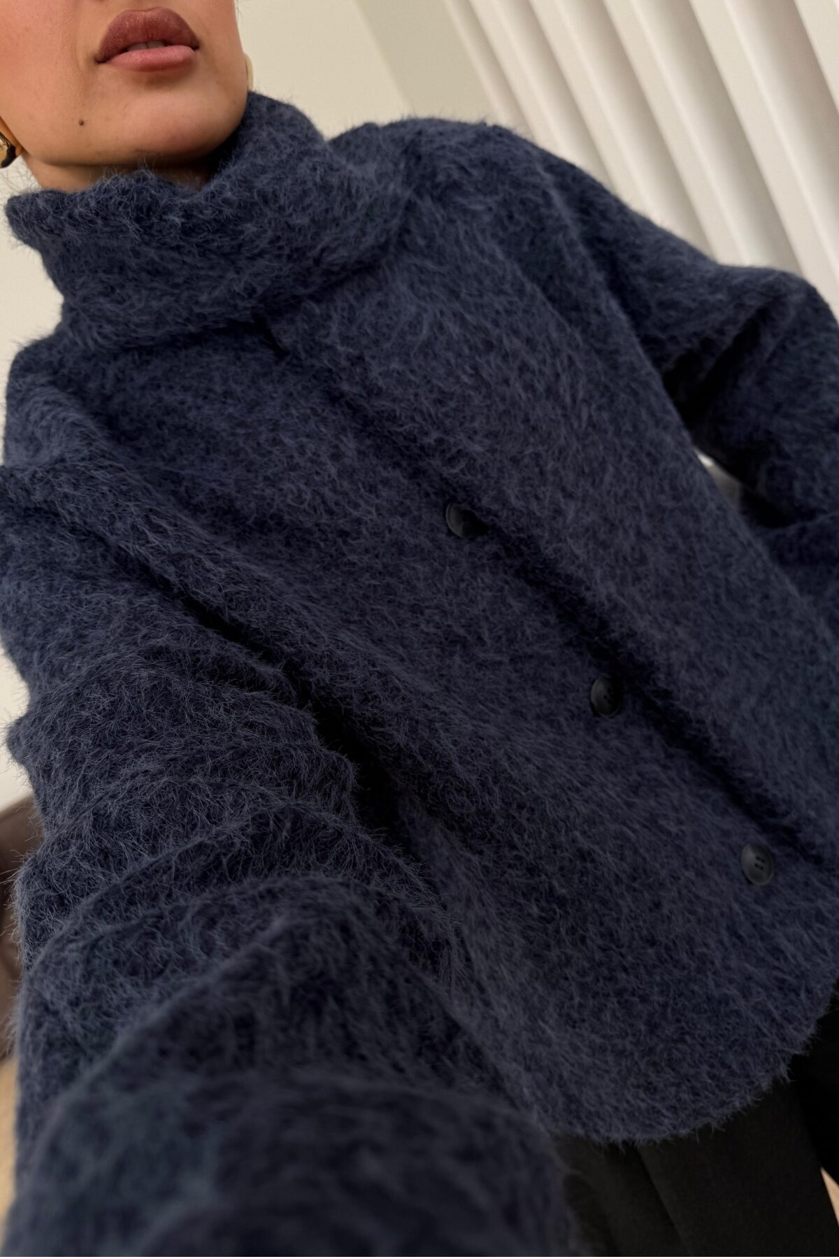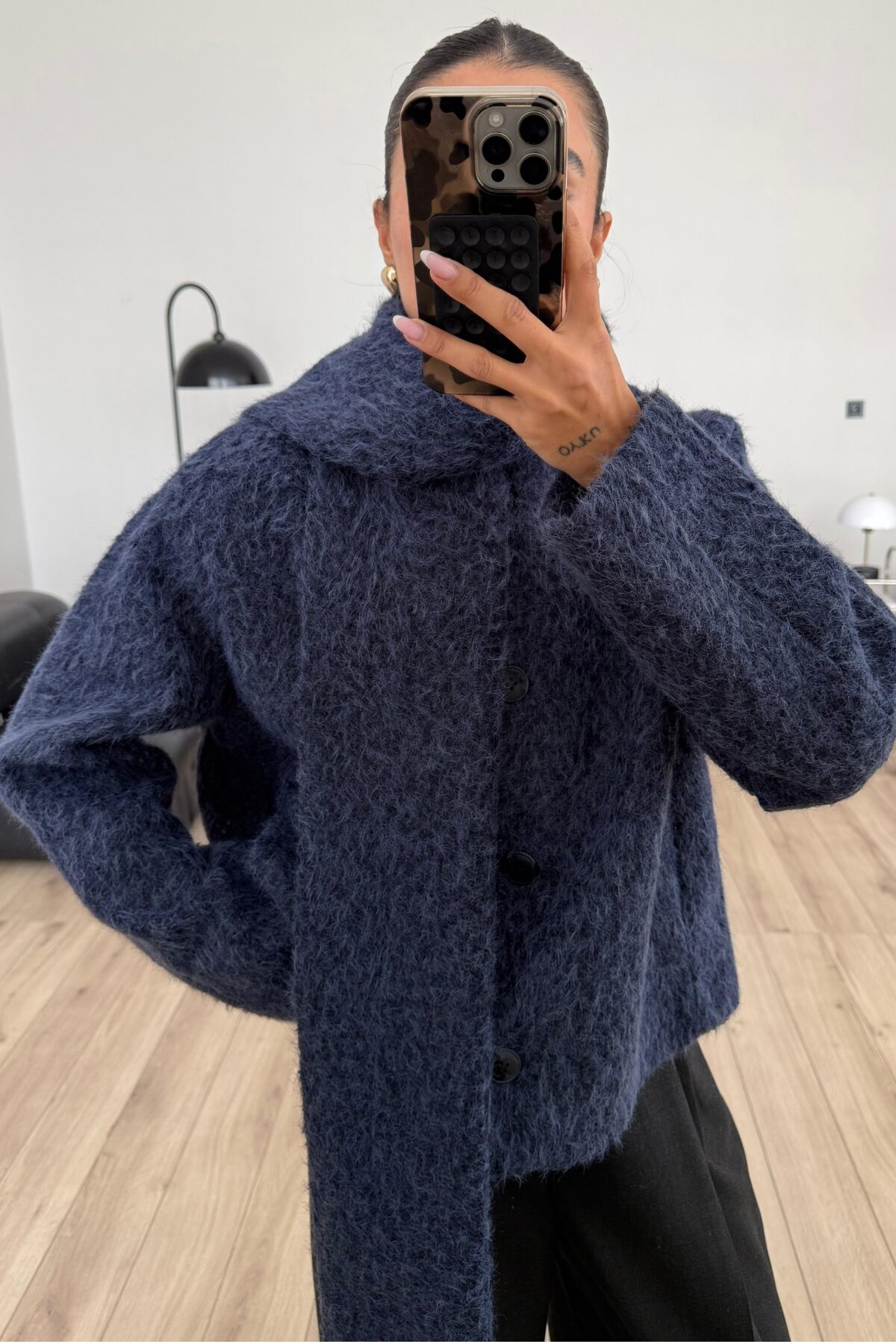 Atkılı Düğmeli Kırçıllı Ceket Lacivert