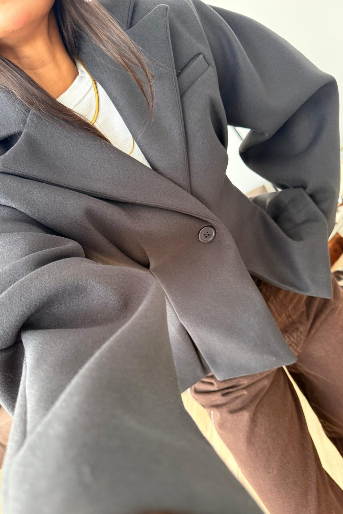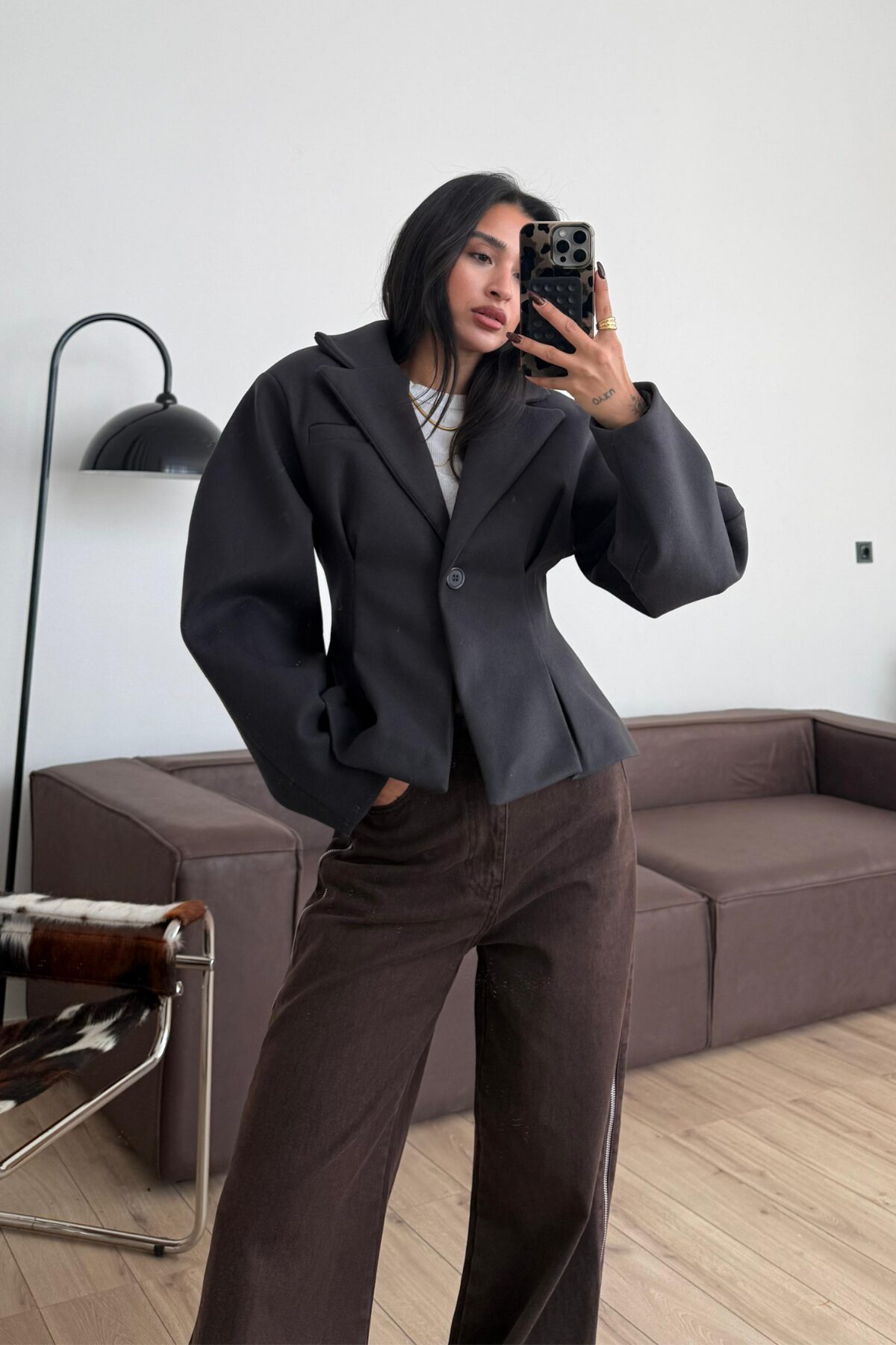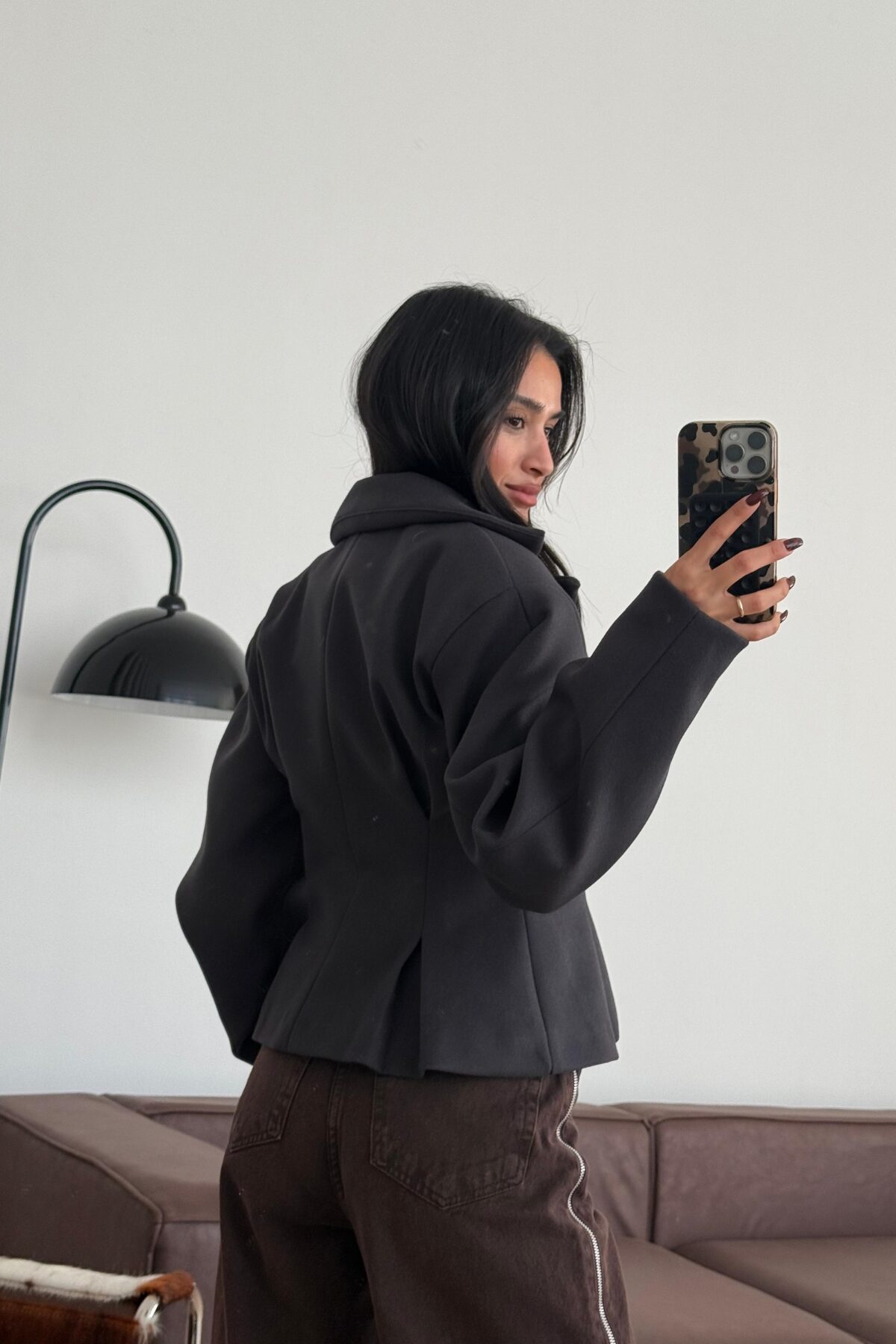 Belden Oturtmalı Kısa Kaşe Ceket Füme