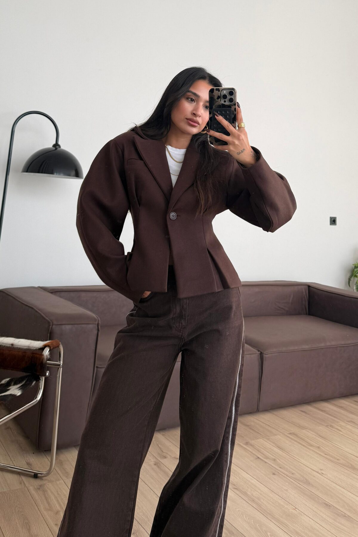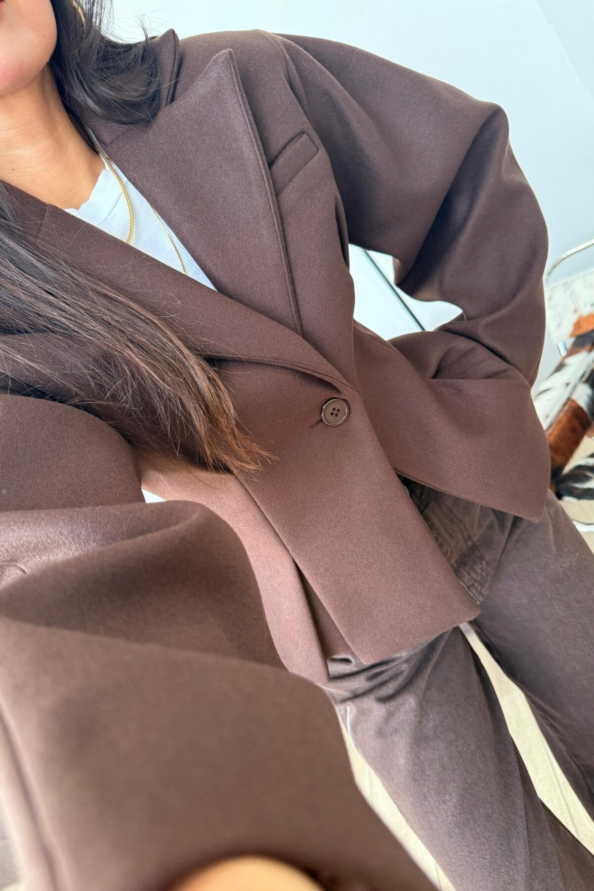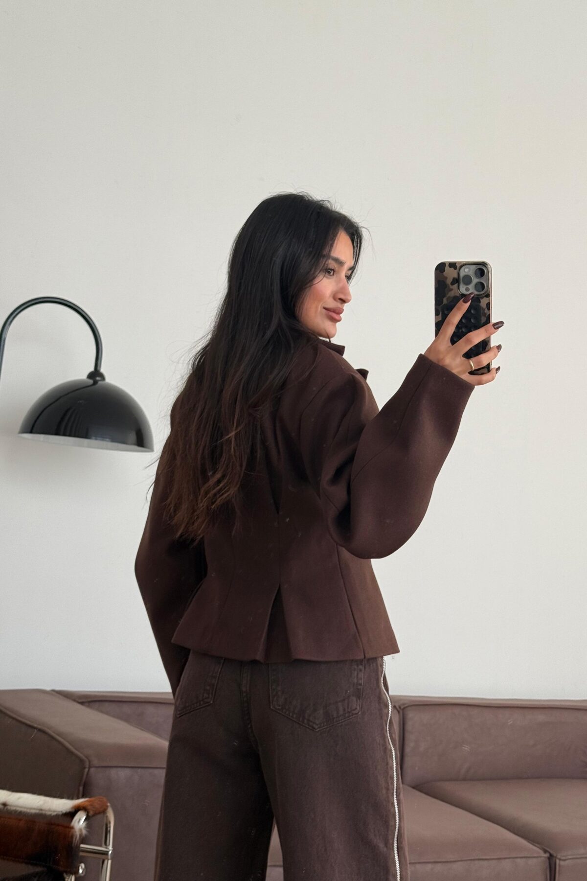 Belden Oturtmalı Kısa Kaşe Ceket Kahverengi