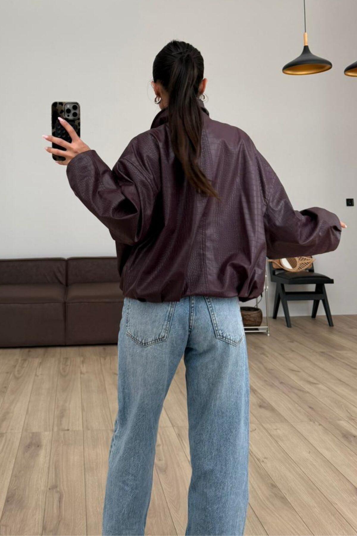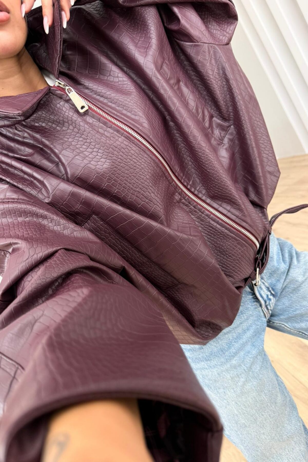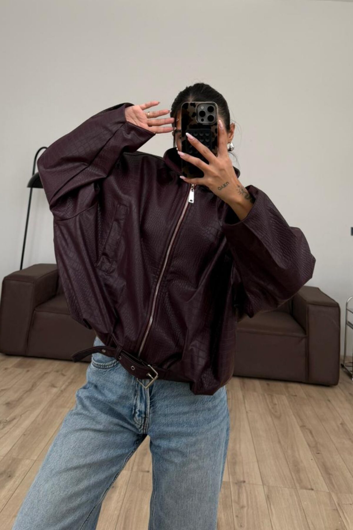 Beli Ayarlanabilir Yılan Derisi Ceket Bordo