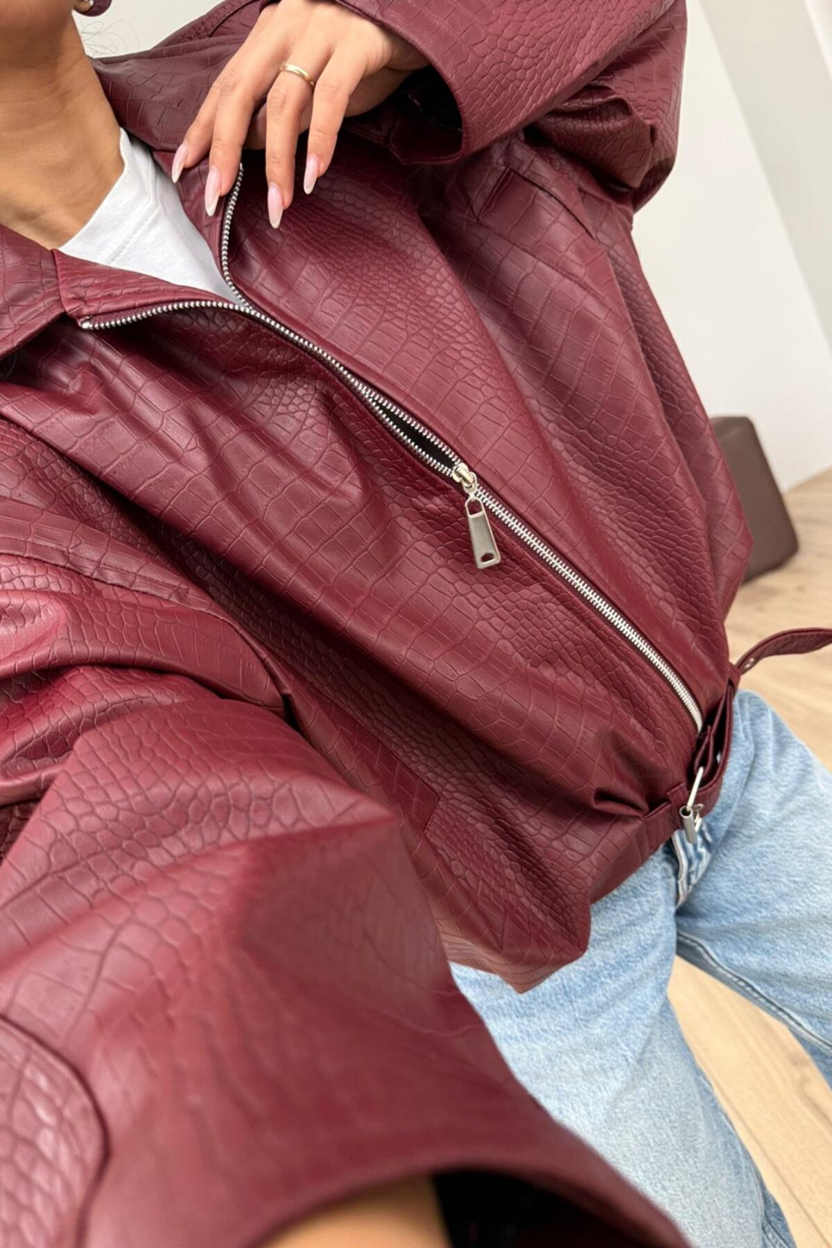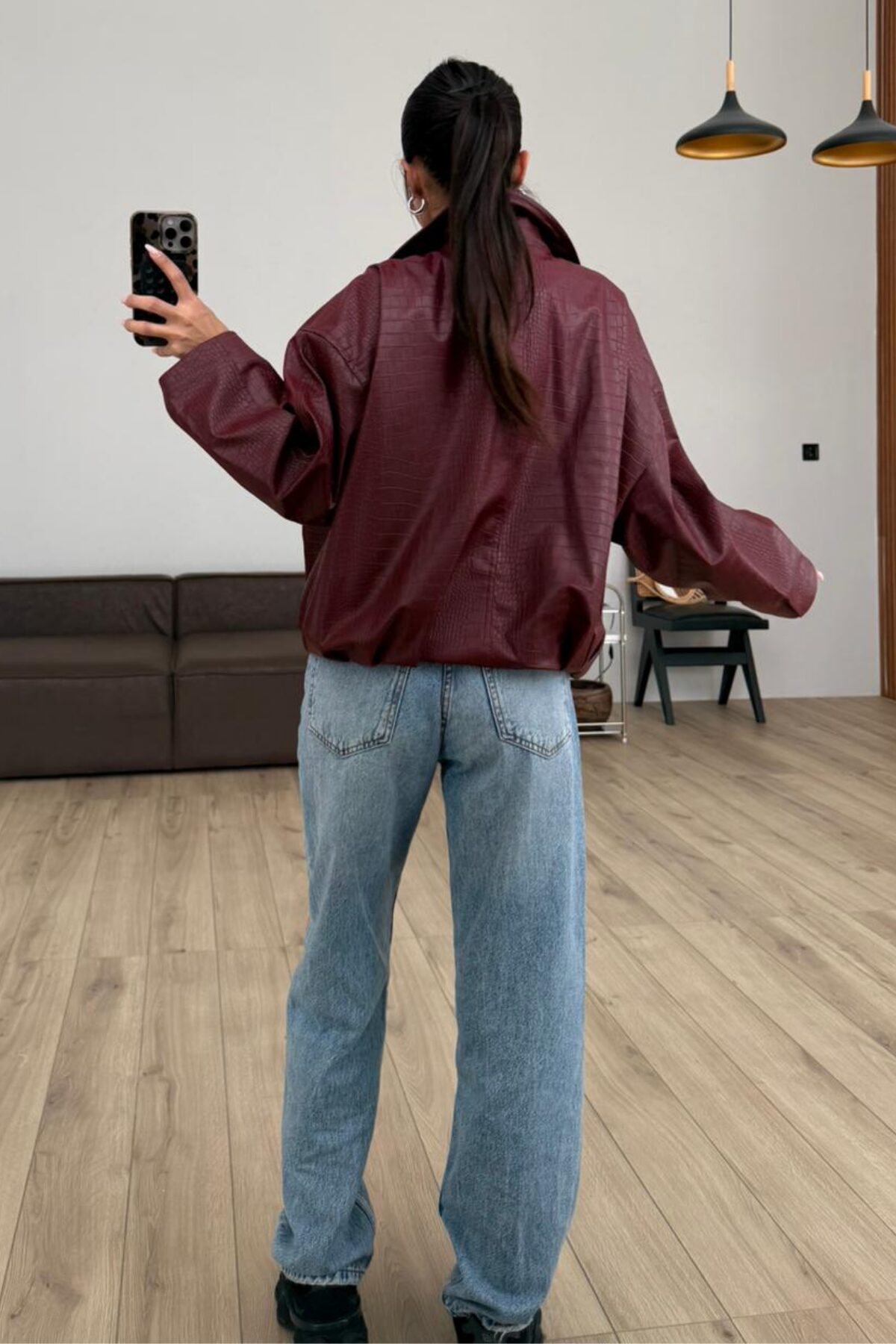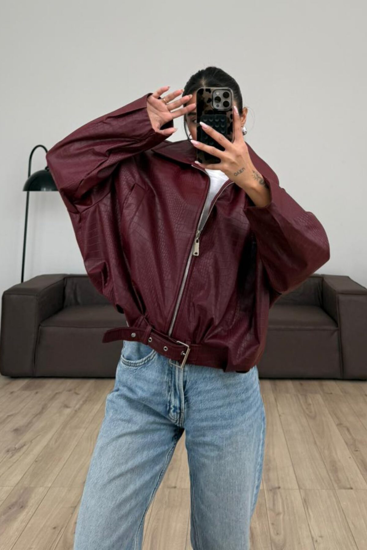 Beli Ayarlanabilir Yılan Derisi Ceket Kırmızı