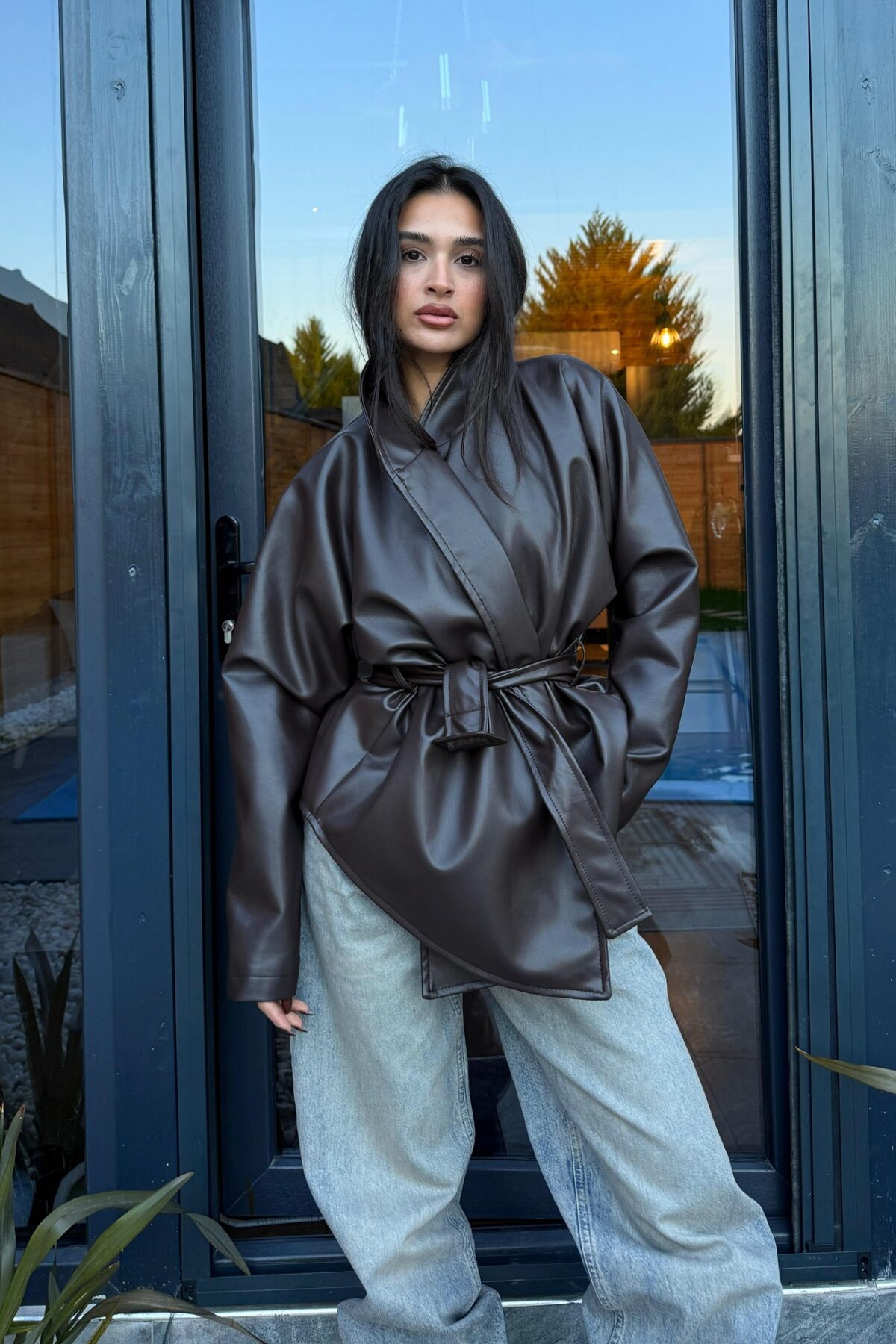 Beli Kemerli Yumuşak Deri Ceket Acı Kahve