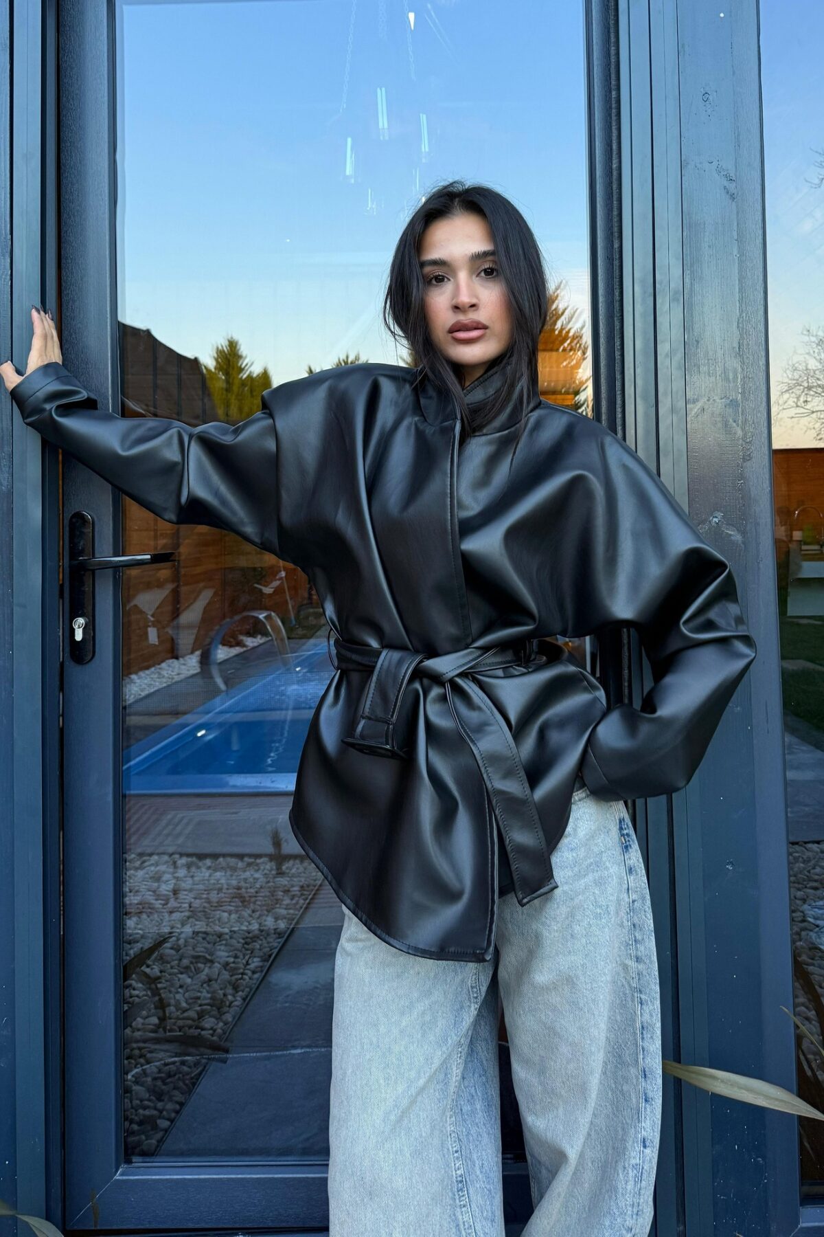 Beli Kemerli Yumuşak Deri Ceket Siyah
