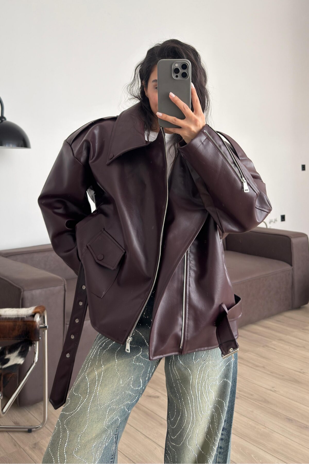 “Çapraz Fermuarlı Deri Ceket Bordo” için yorum yapan ilk kişi siz olun