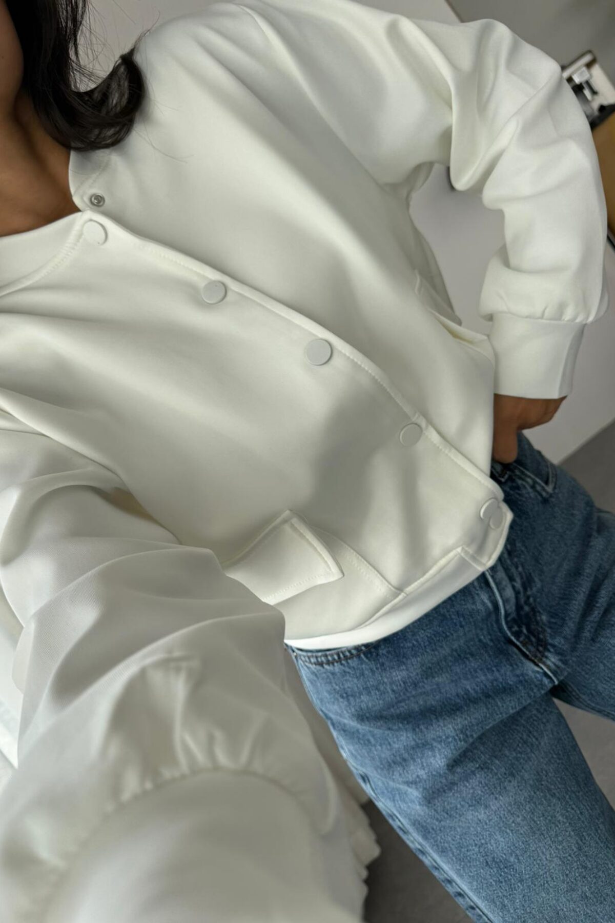 Çıtçıtlı Scuba Ceket Beyaz