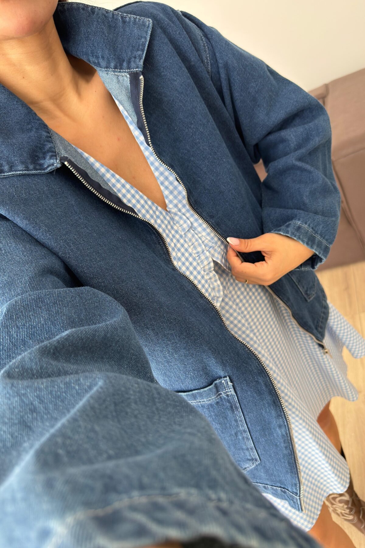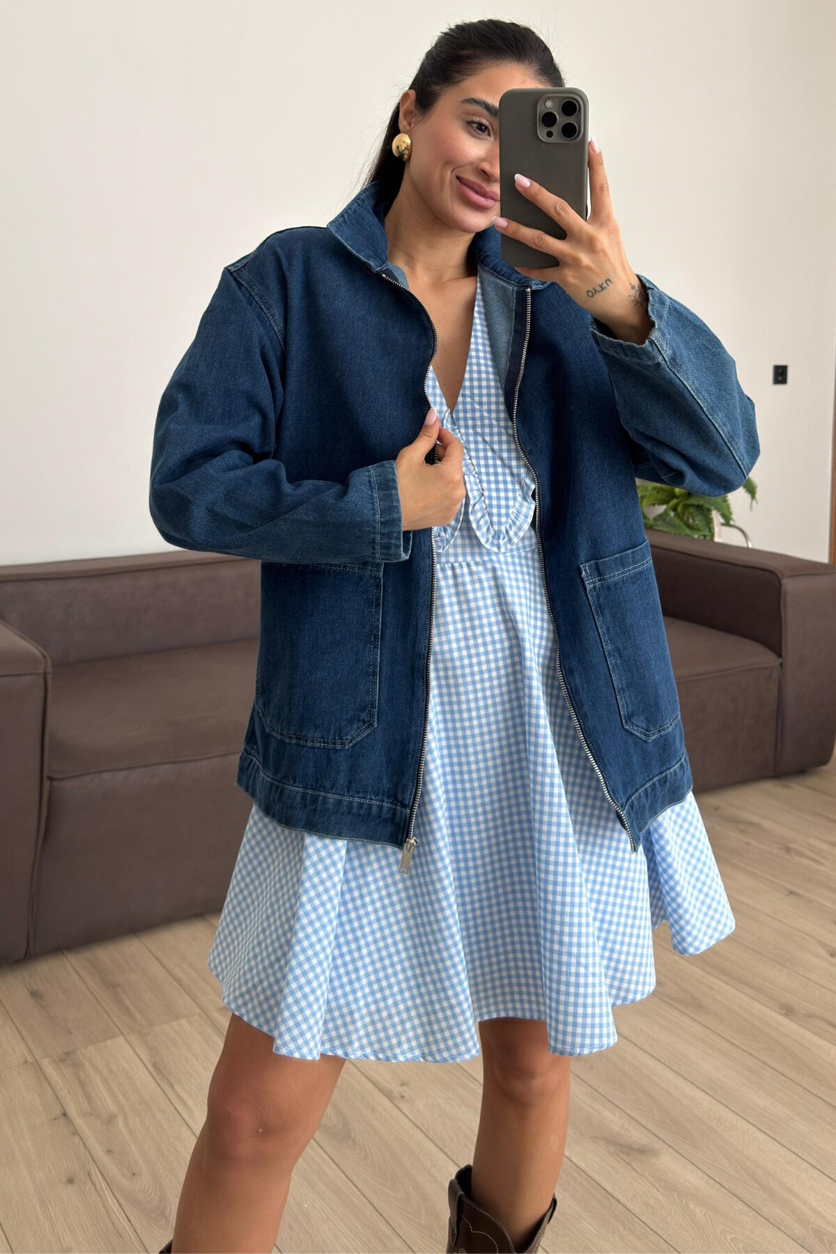 Fermuarlı Önü Cepli Kot Ceket Lacivert