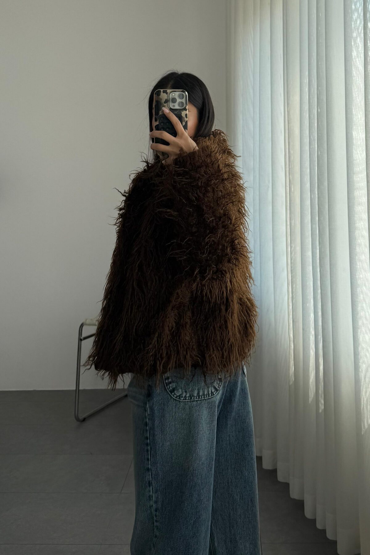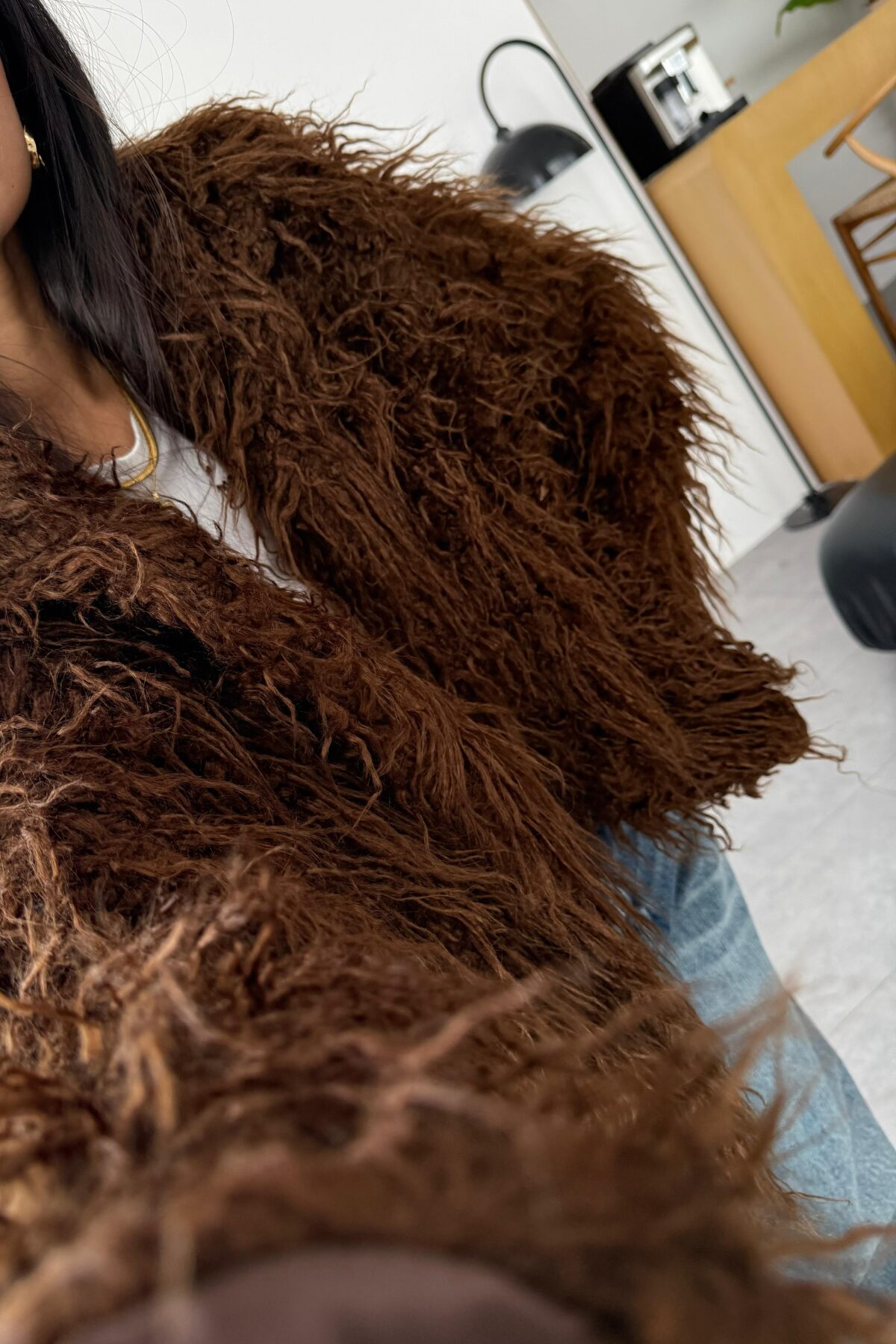 Kabarık Tüylü Kürk Ceket Kahverengi