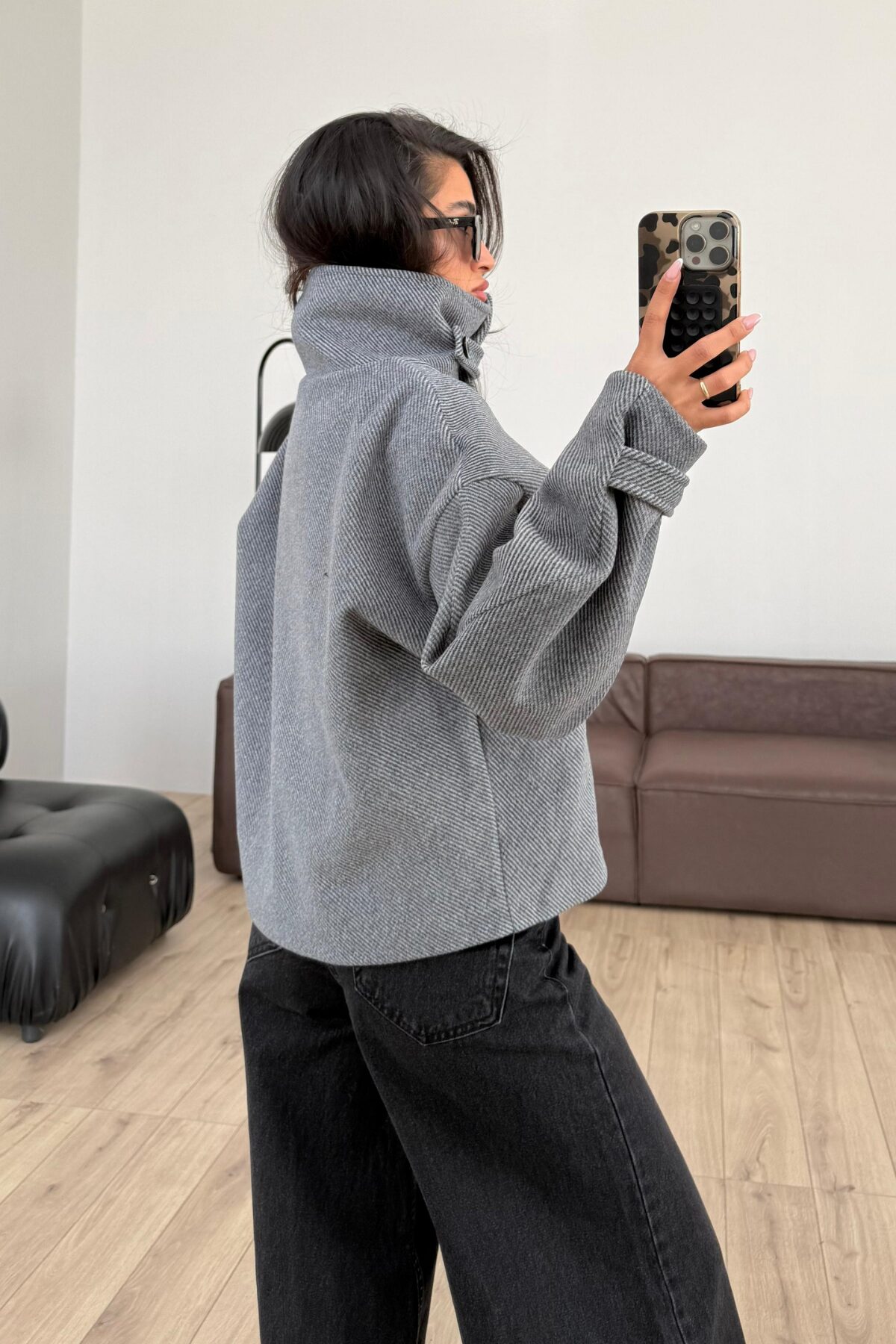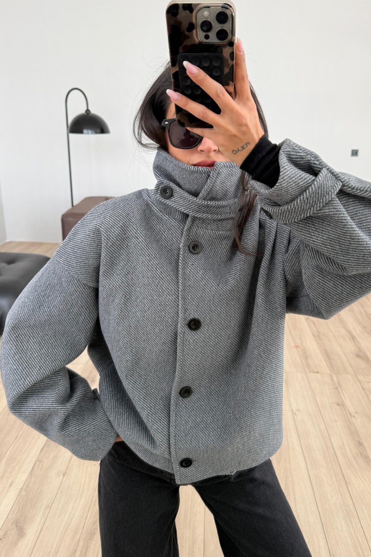 Kaşe Çizgili Düğmeli Ceket Antrasit