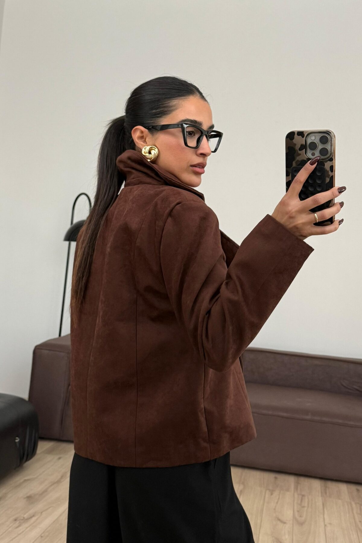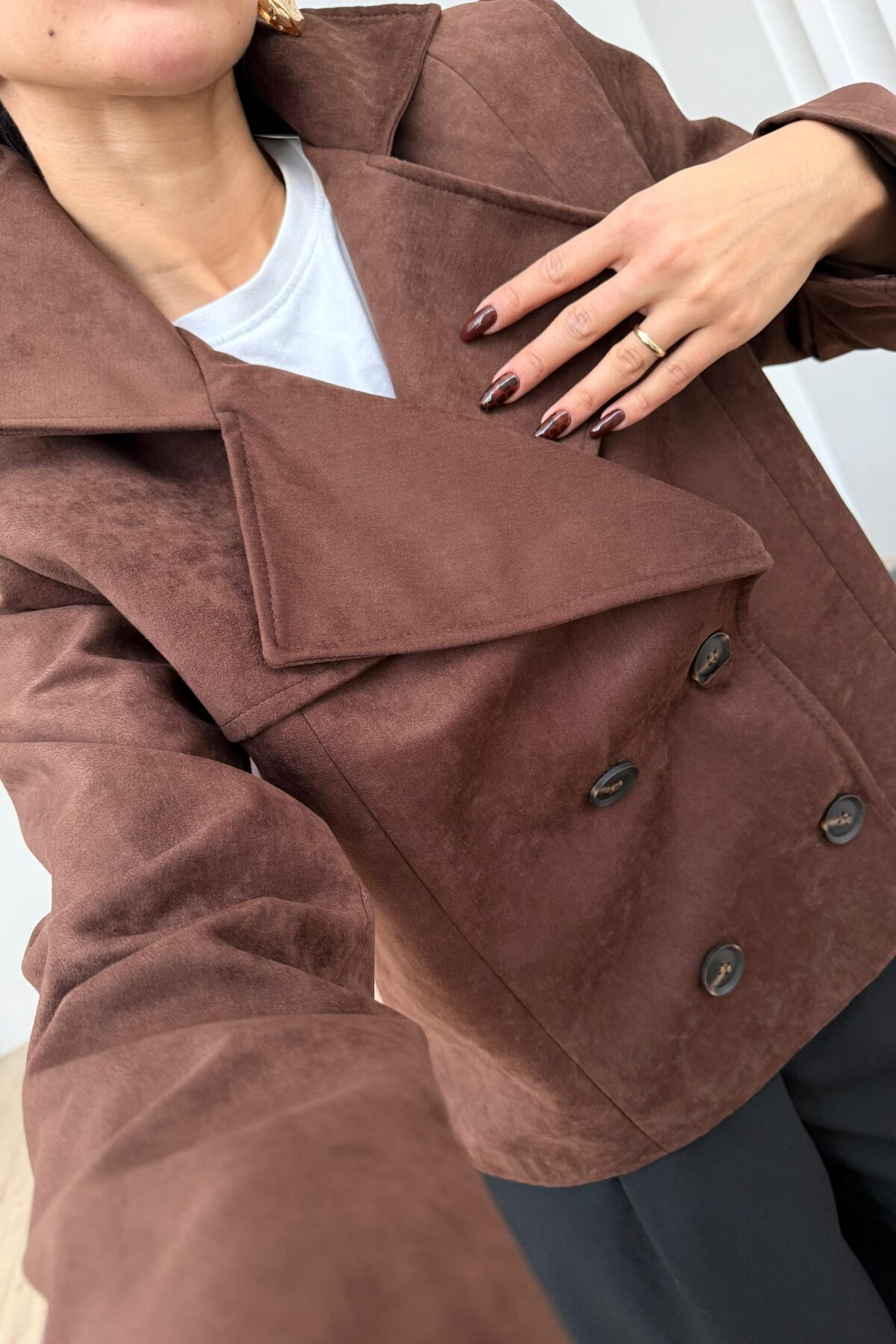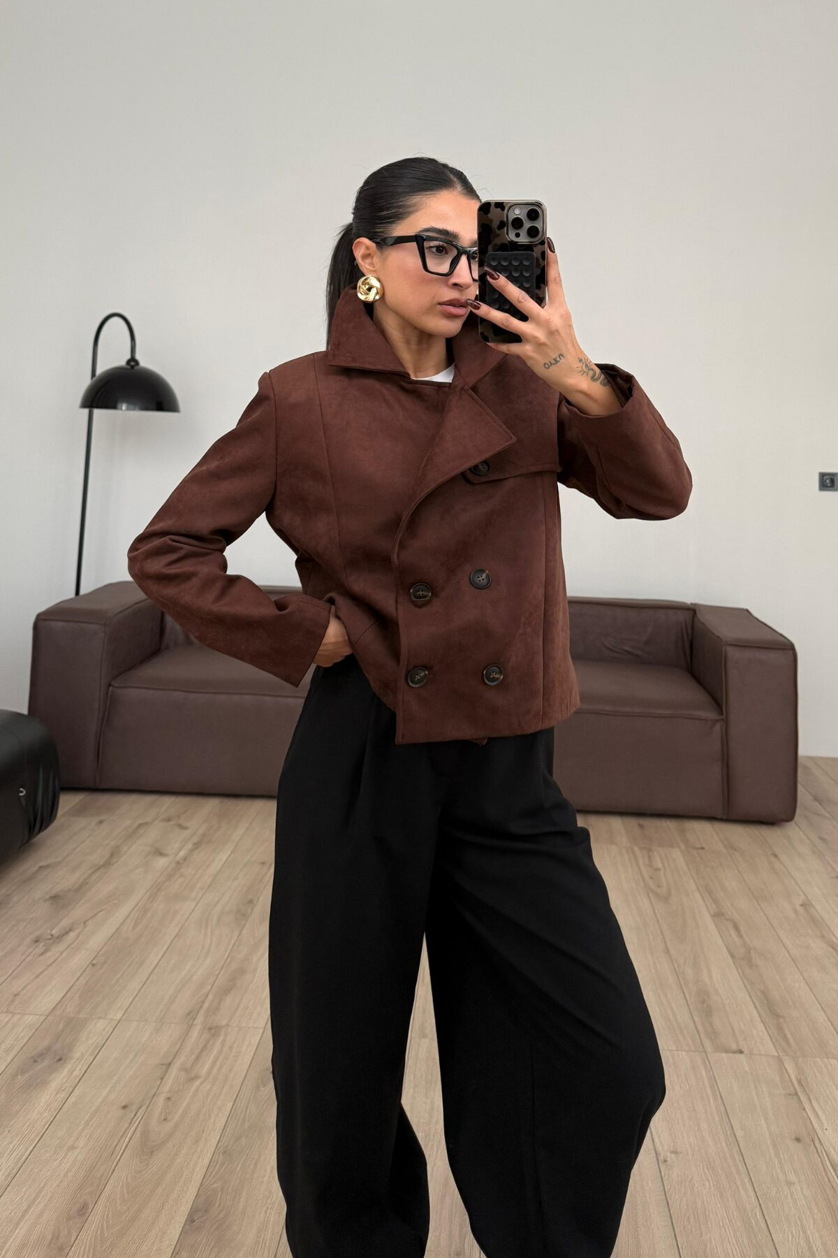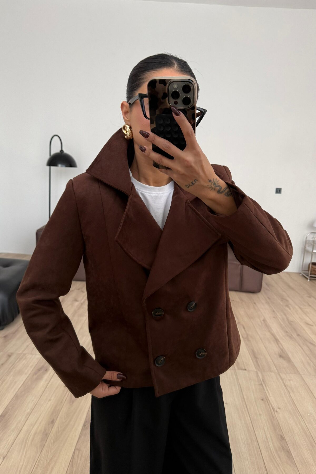 Kruvaze Kısa Süet Ceket Acı Kahve