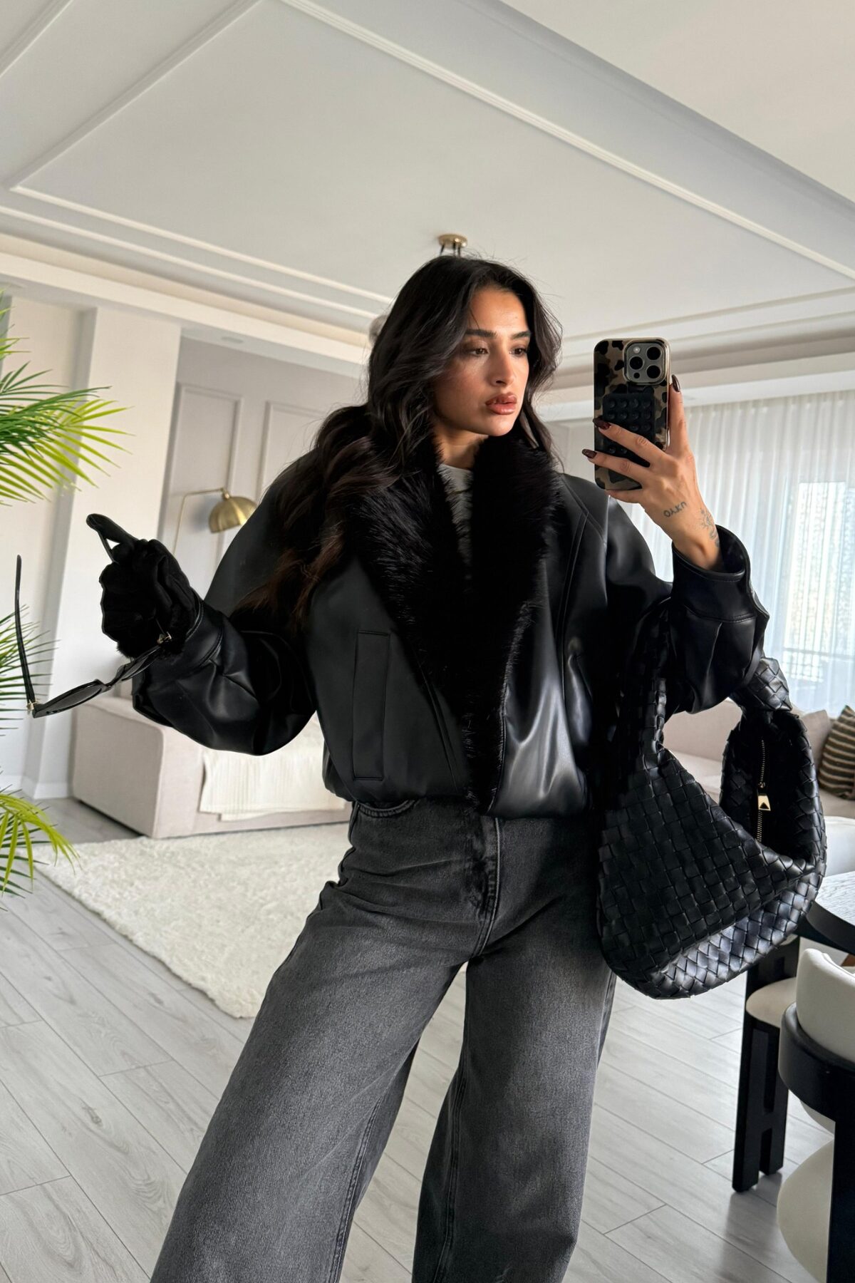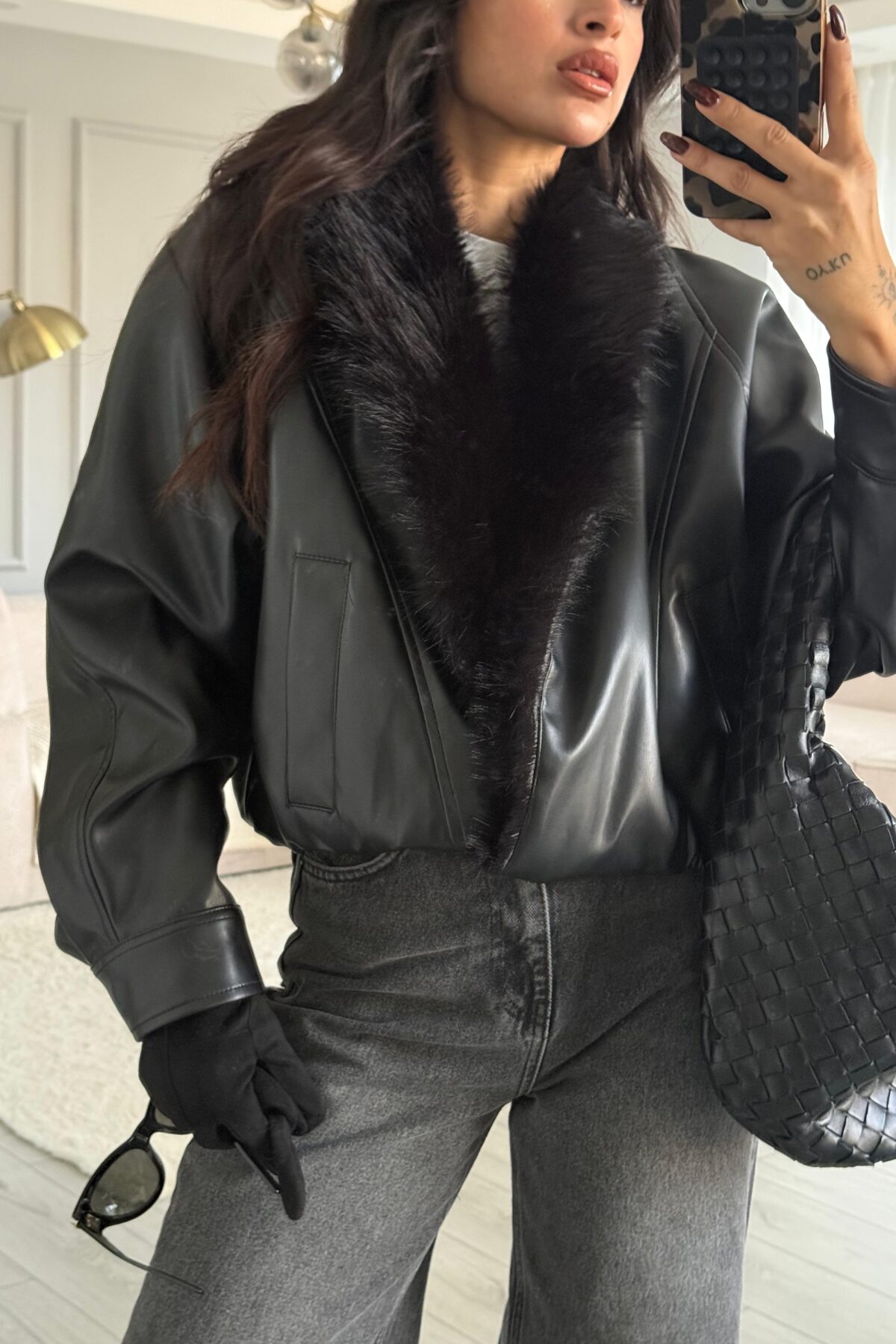 Kürk Detaylı Bomber Ceket Siyah
