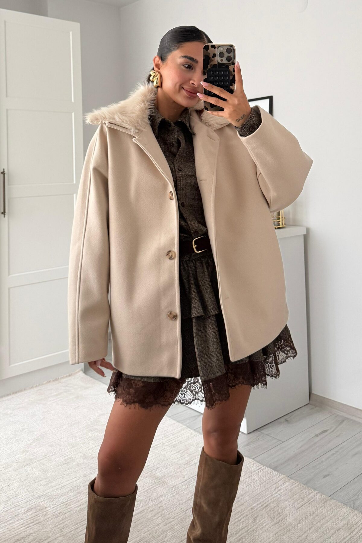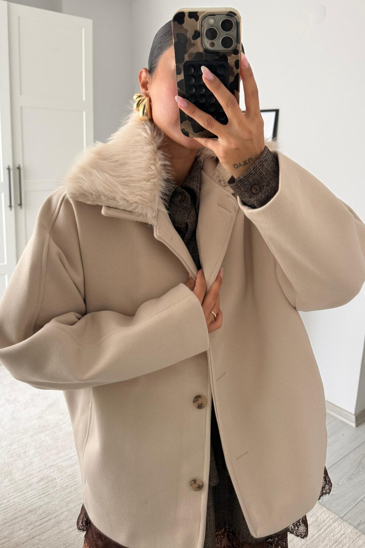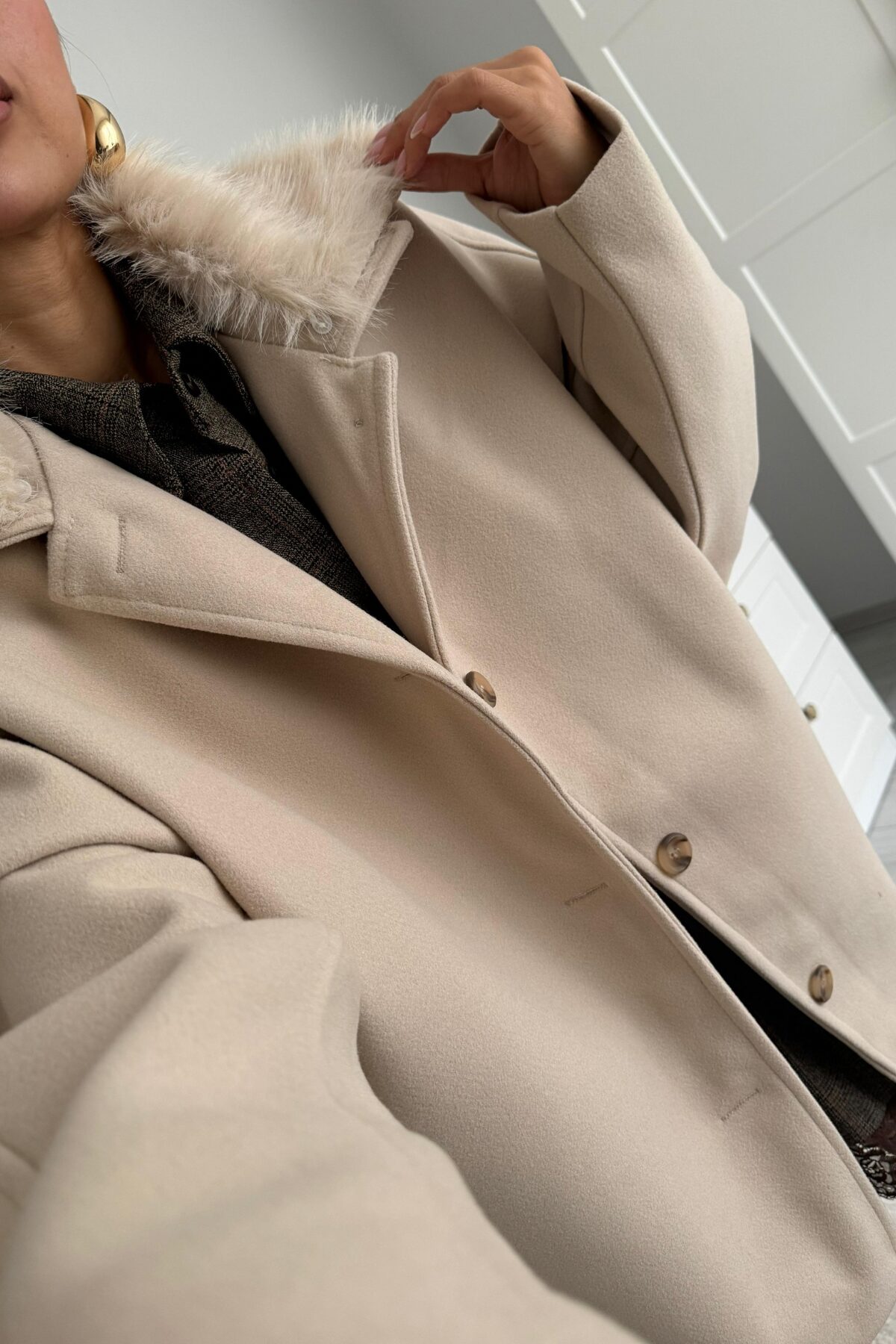 Nayla Yakası Kürklü Ceket Taş