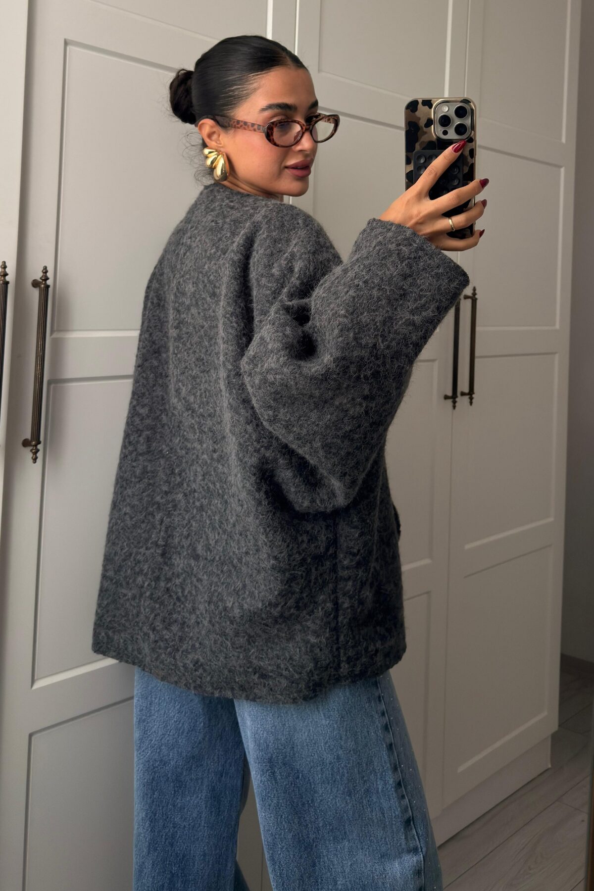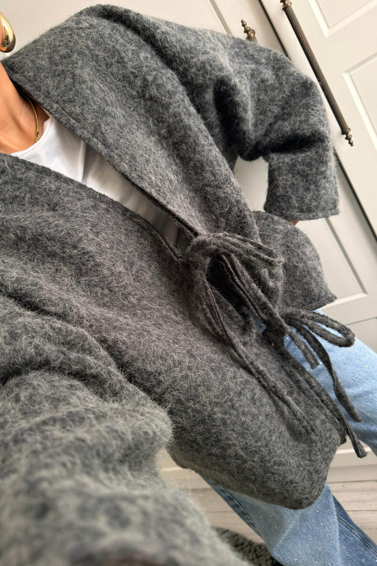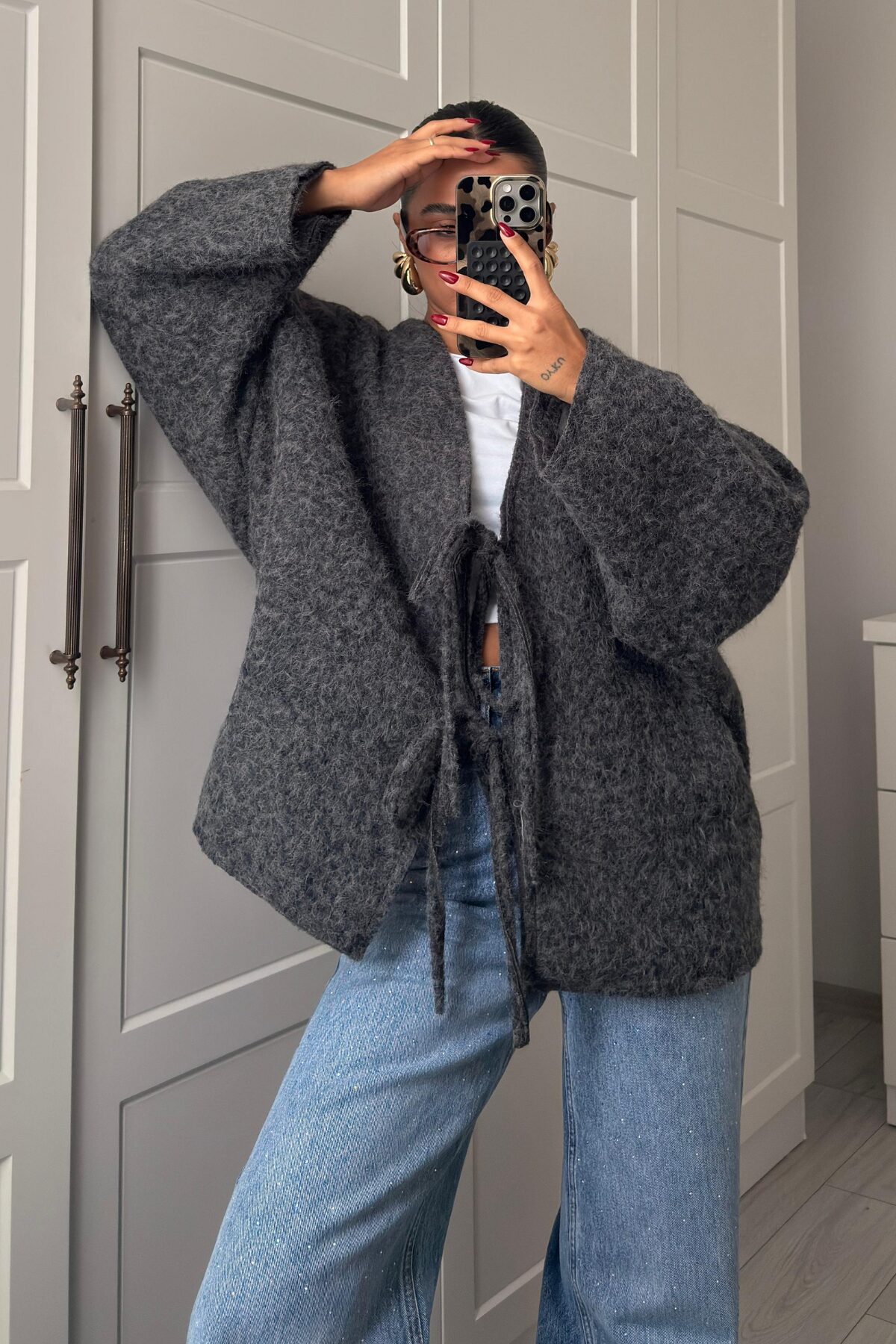 Önden Bağlamalı Kırçıllı Ceket Antrasit