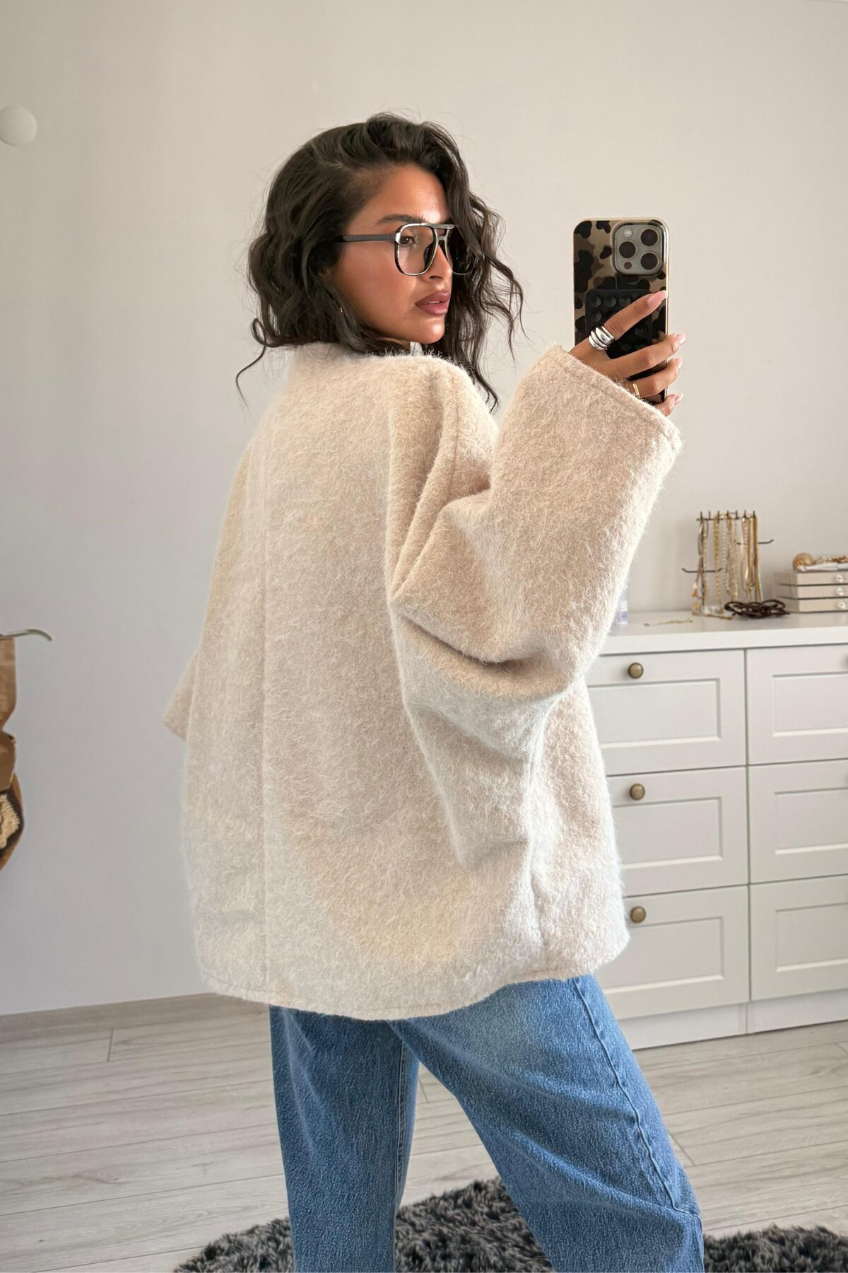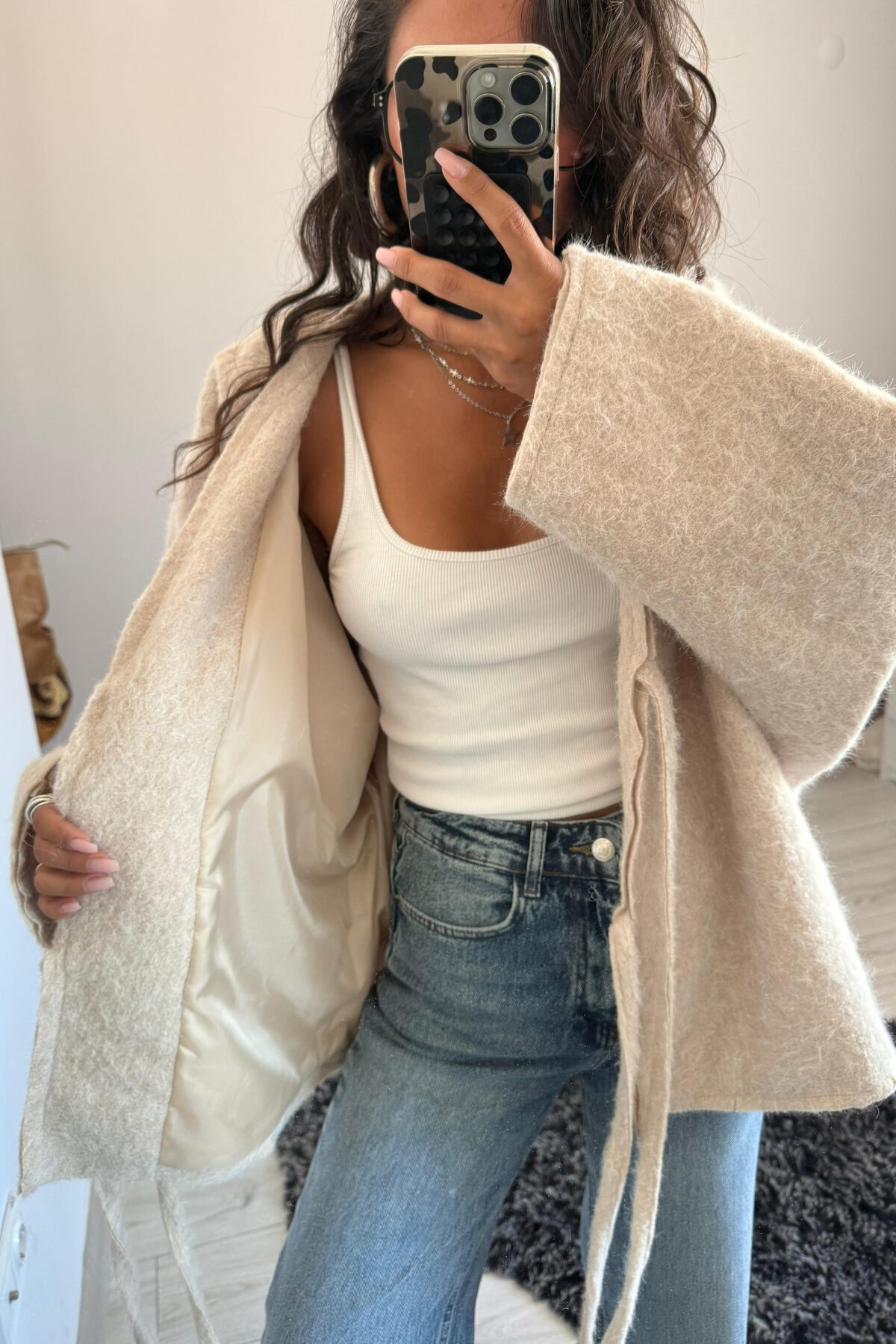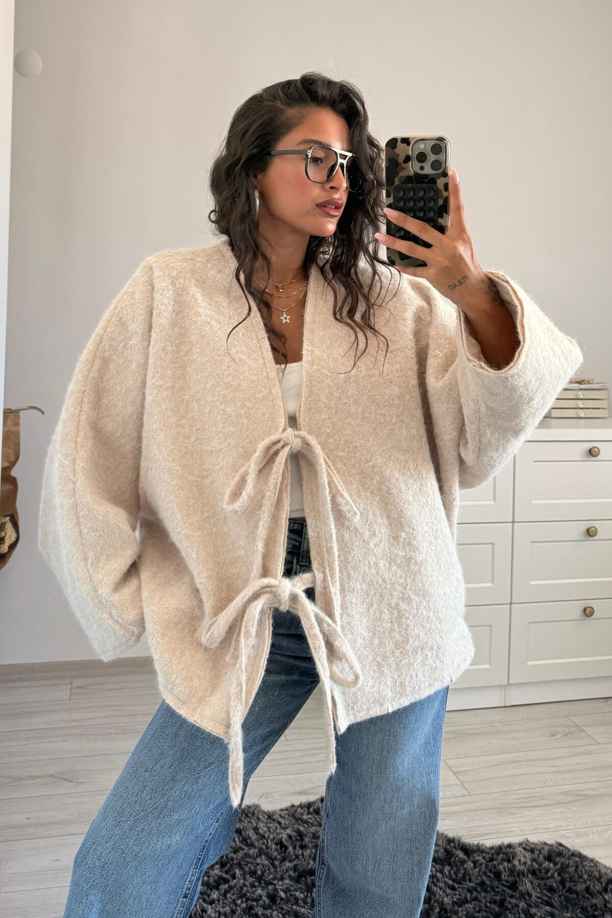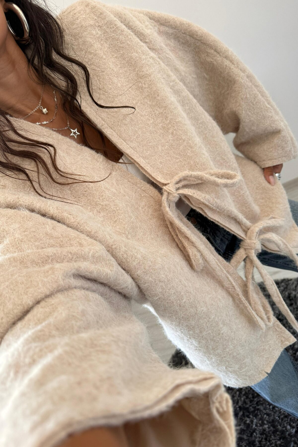 Önden Bağlamalı Kırçıllı Ceket Bej
