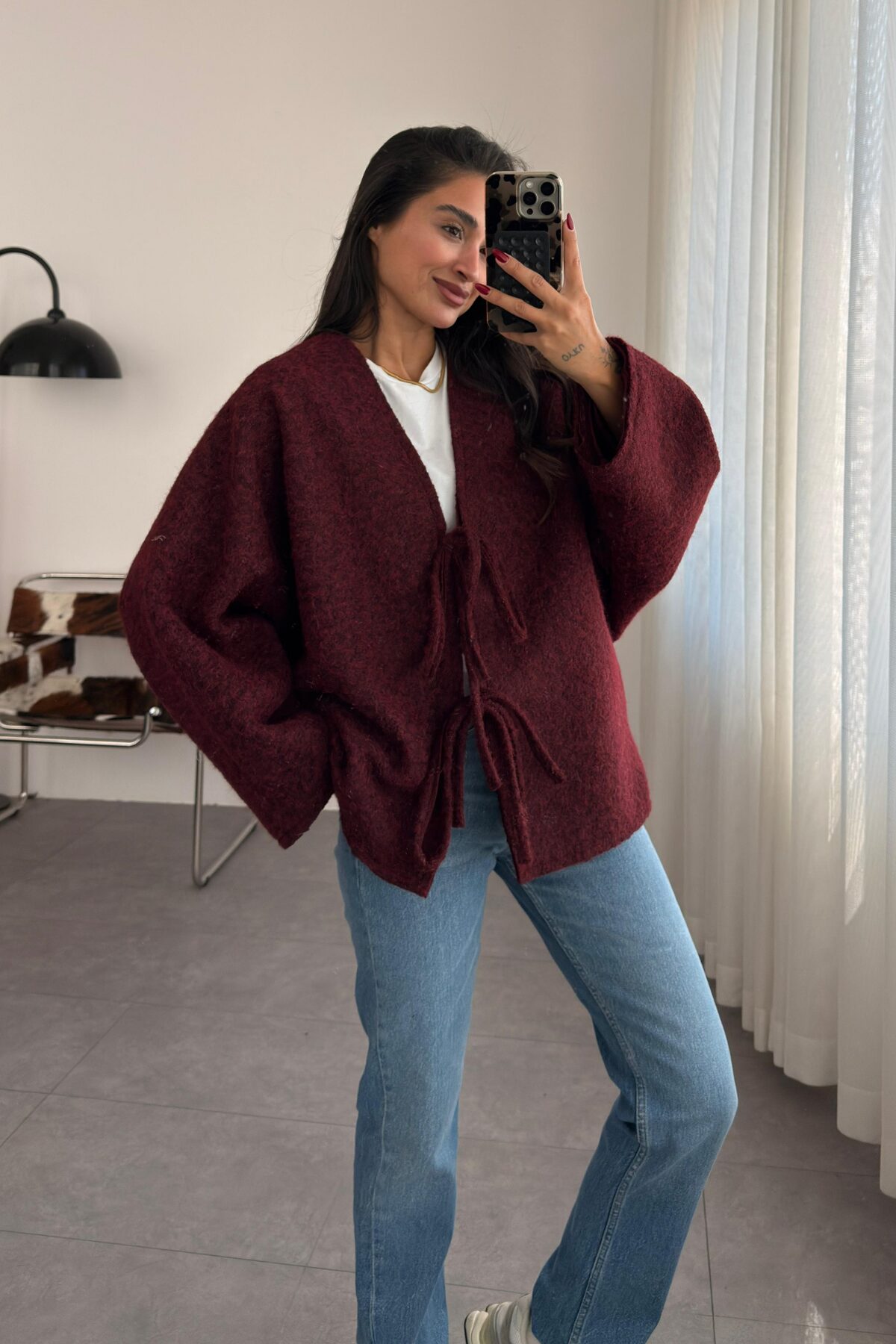 “Önden Bağlamalı Kırçıllı Ceket Bordo” için yorum yapan ilk kişi siz olun