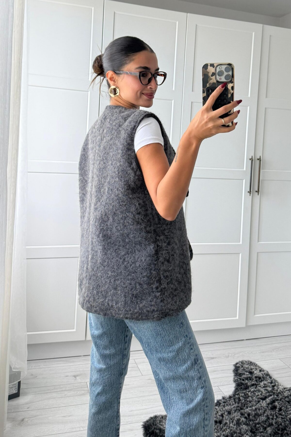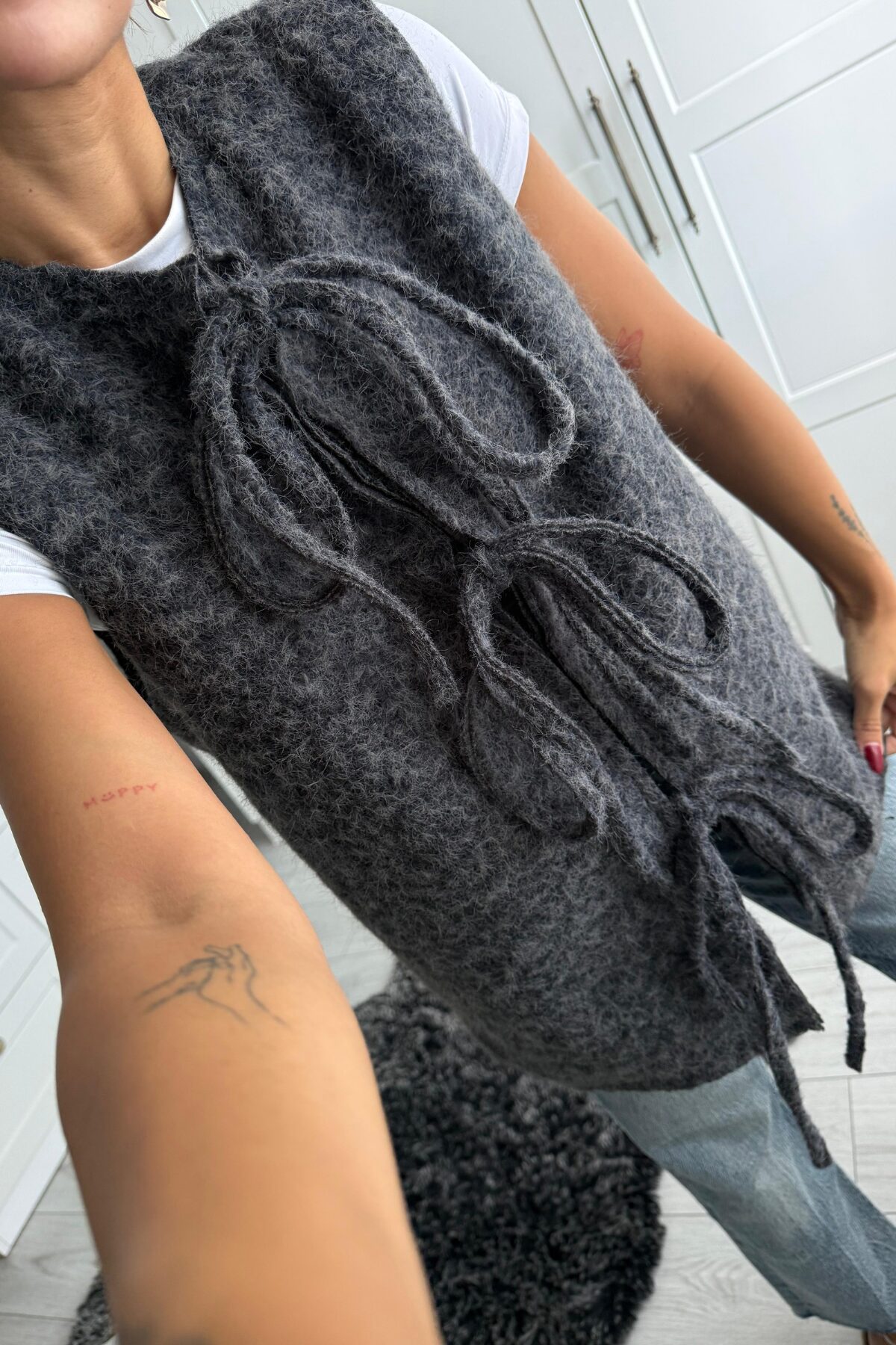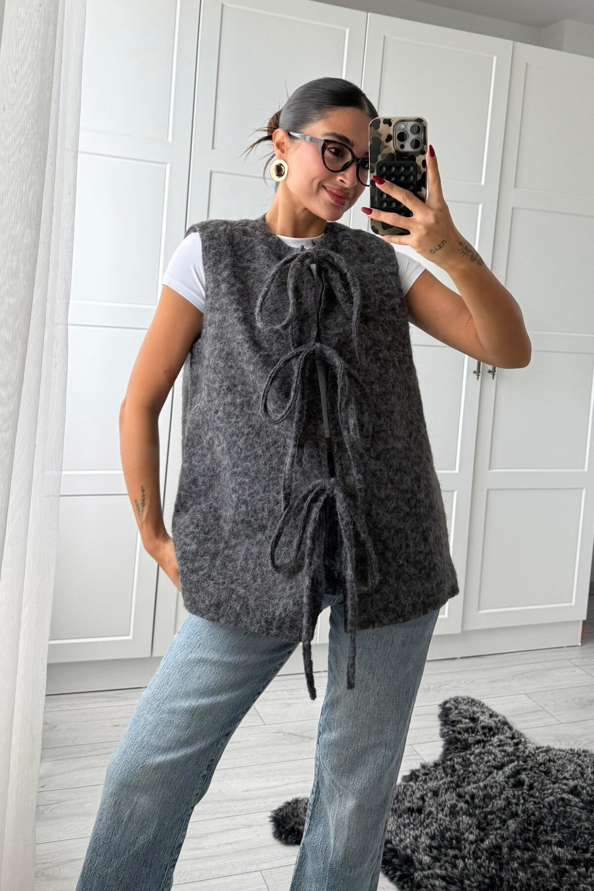 Önden Bağlamalı Kırçıllı Yelek Antrasit