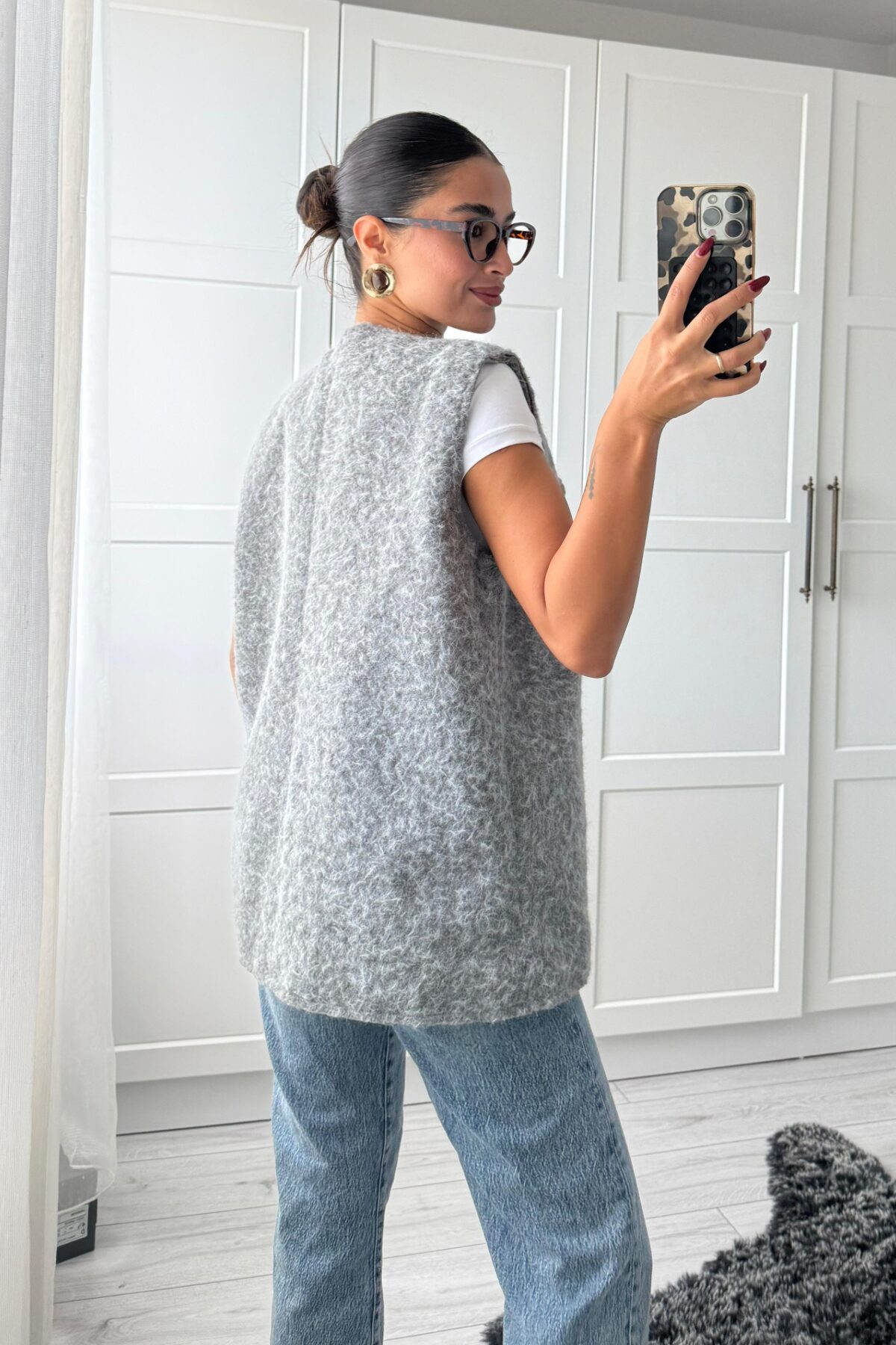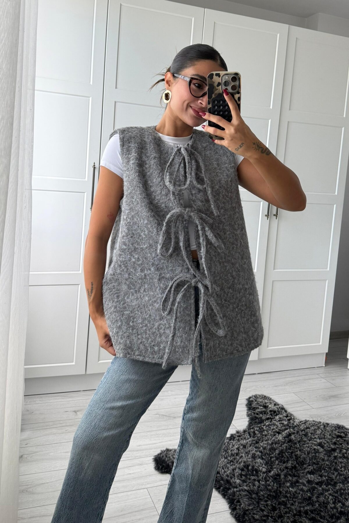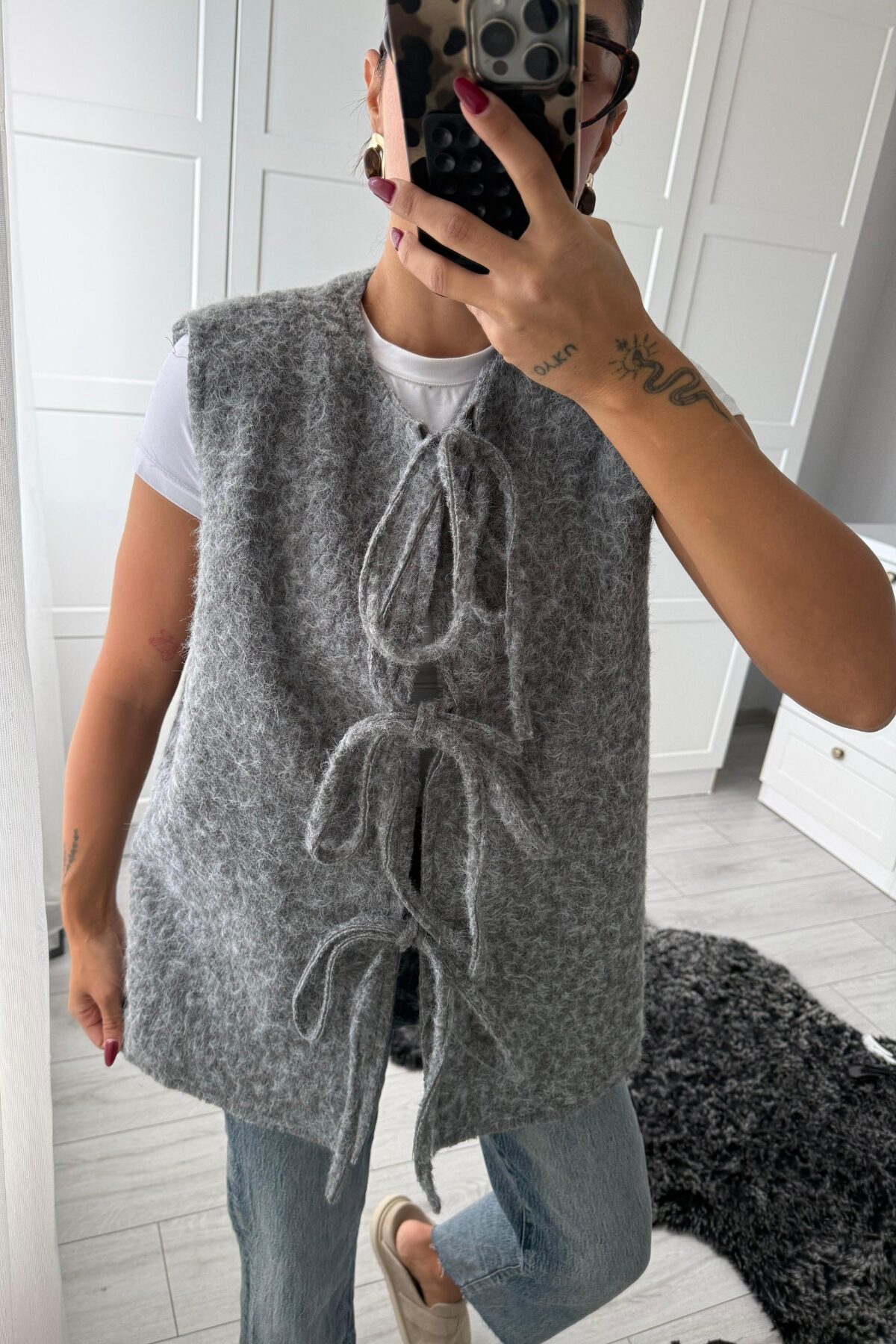 Önden Bağlamalı Kırçıllı Yelek Gri