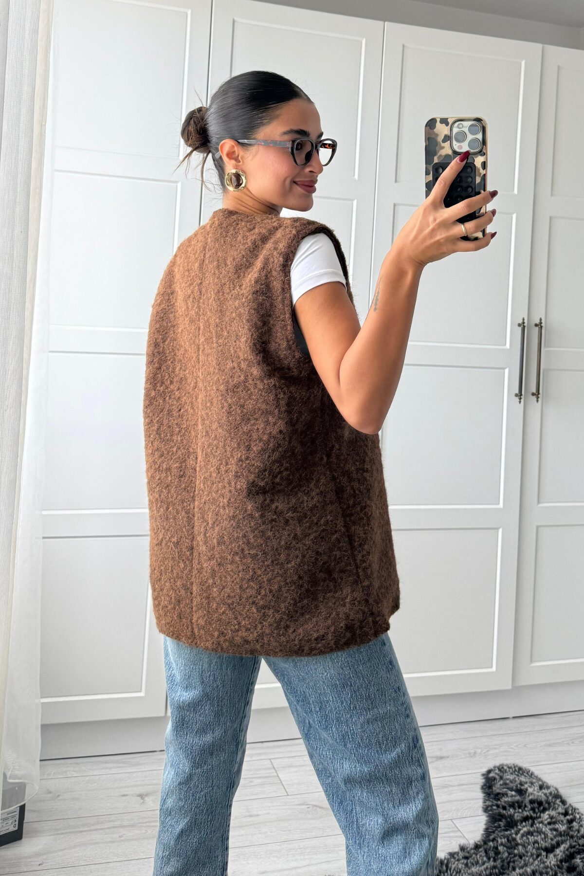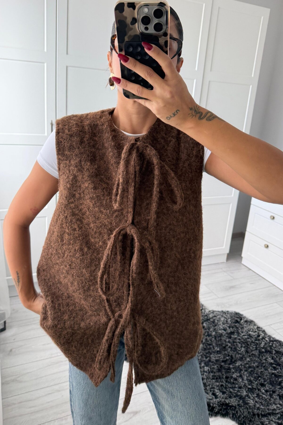 Önden Bağlamalı Kırçıllı Yelek Kahverengi