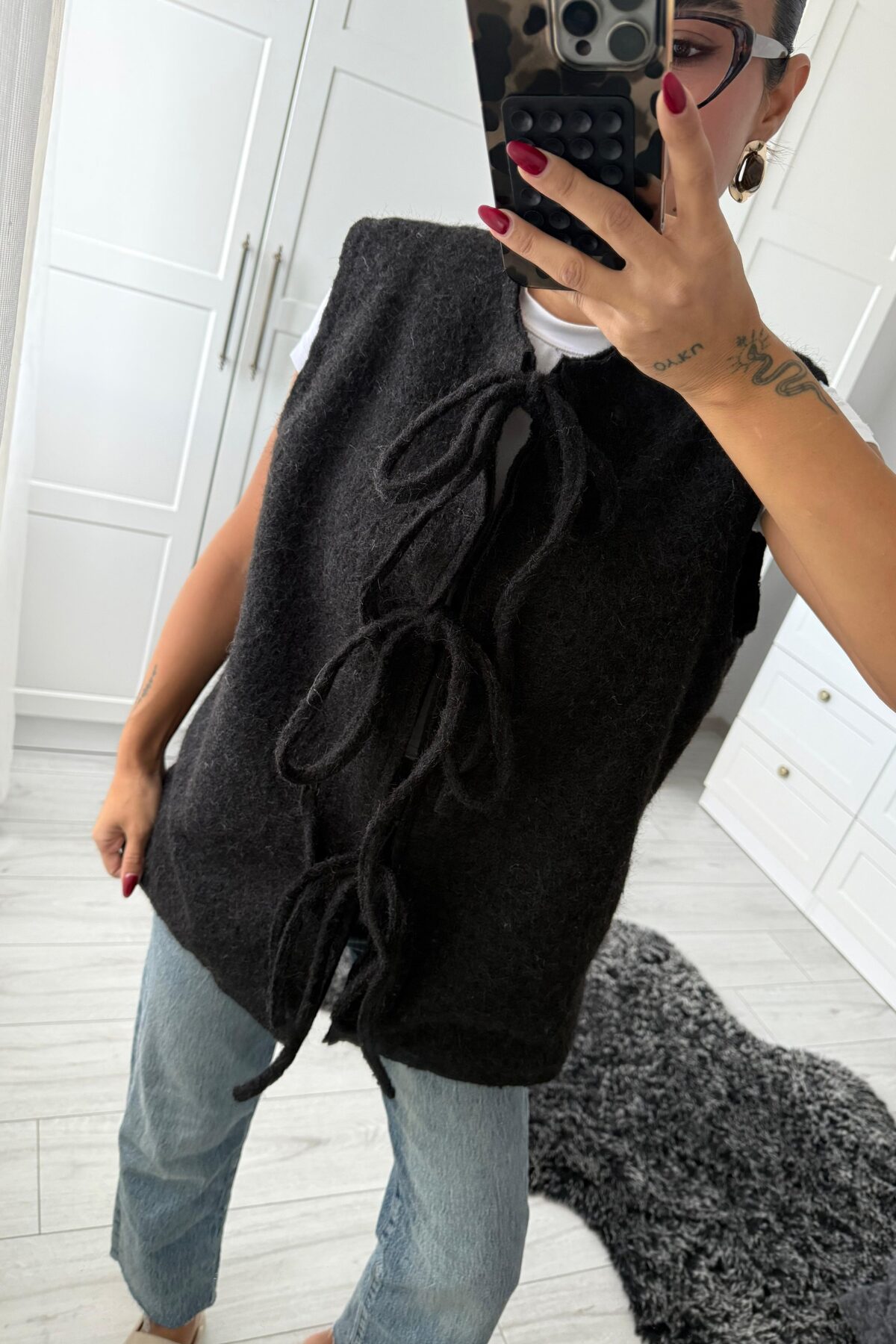“Önden Bağlamalı Kırçıllı Yelek Siyah” için yorum yapan ilk kişi siz olun