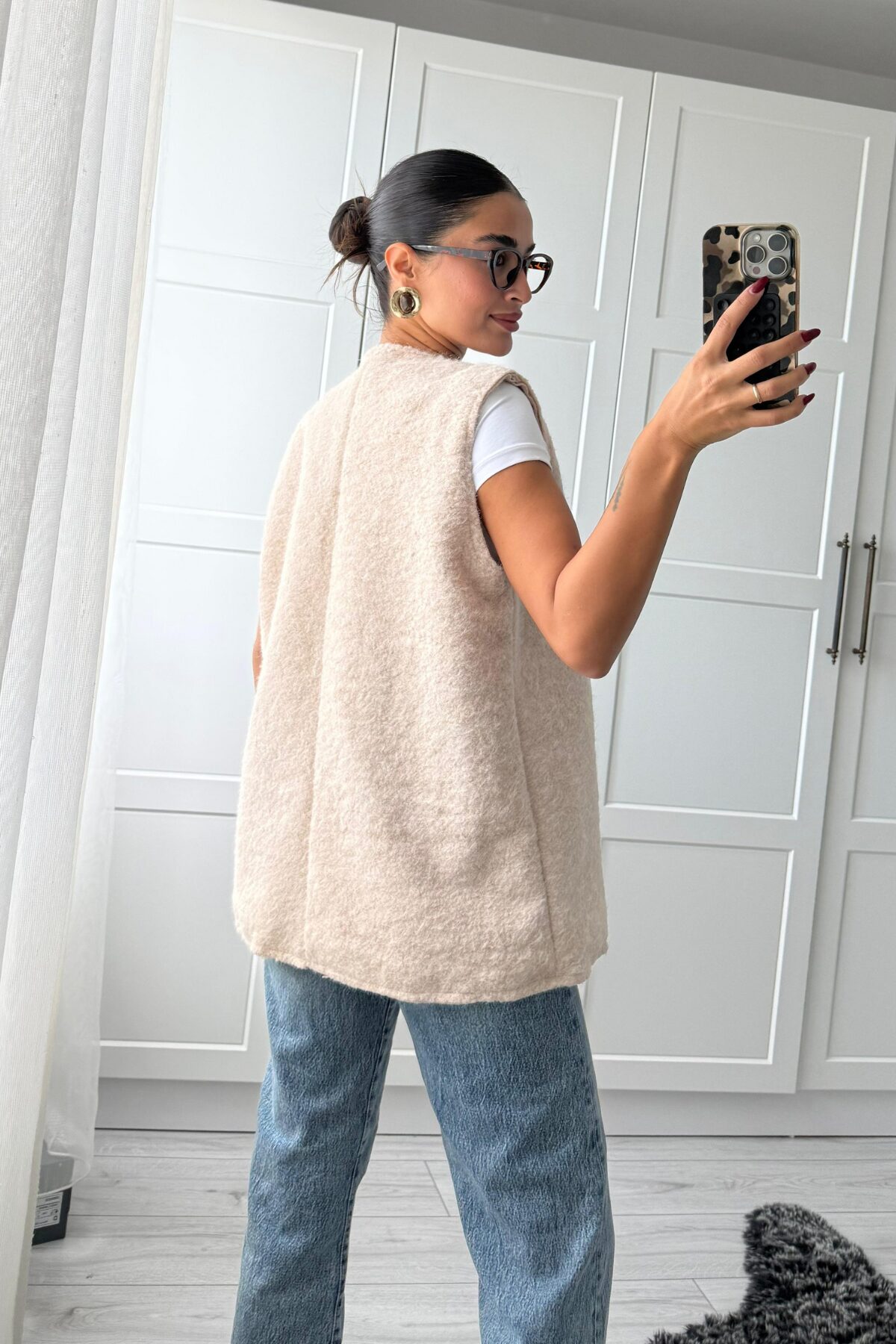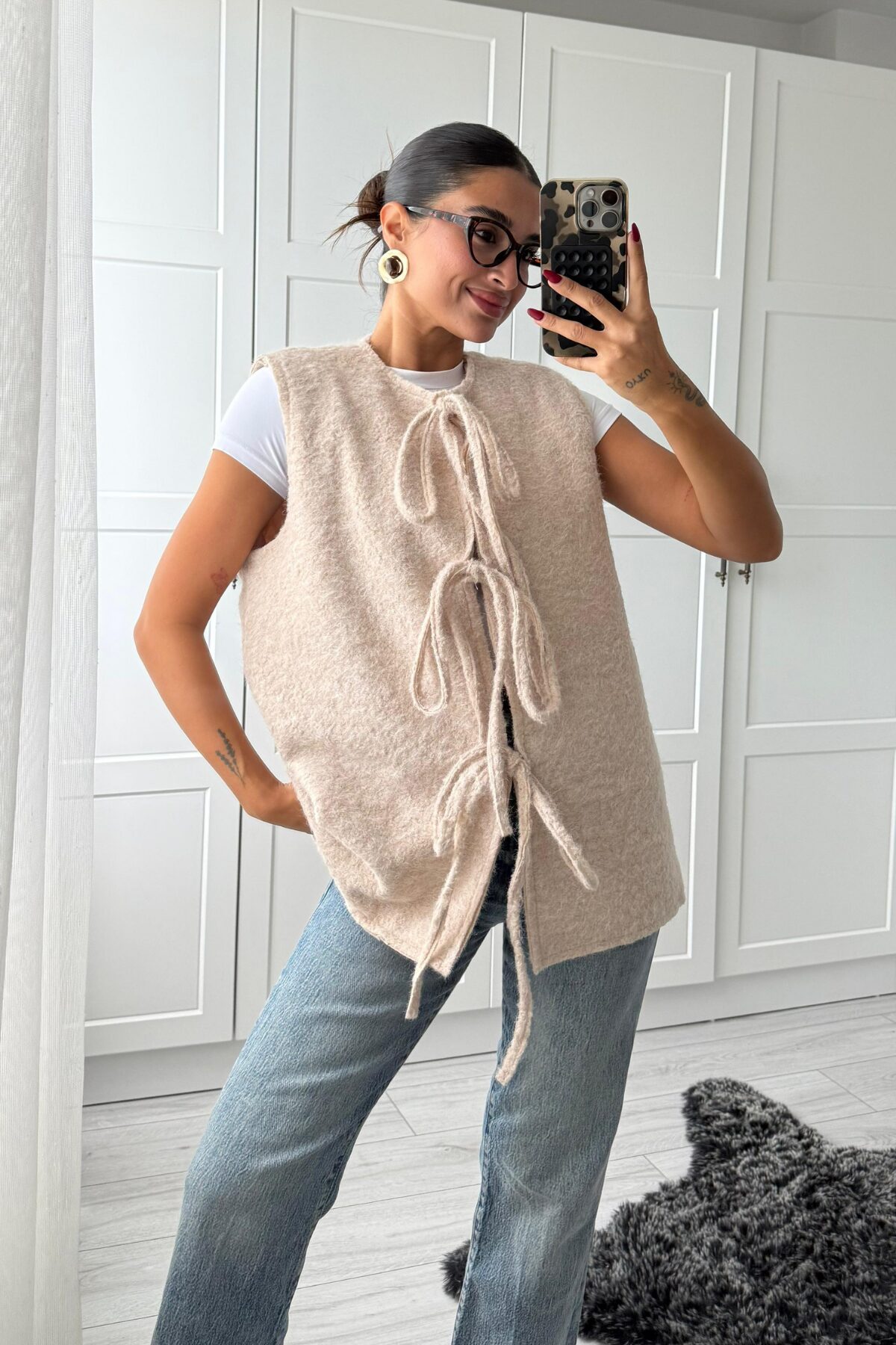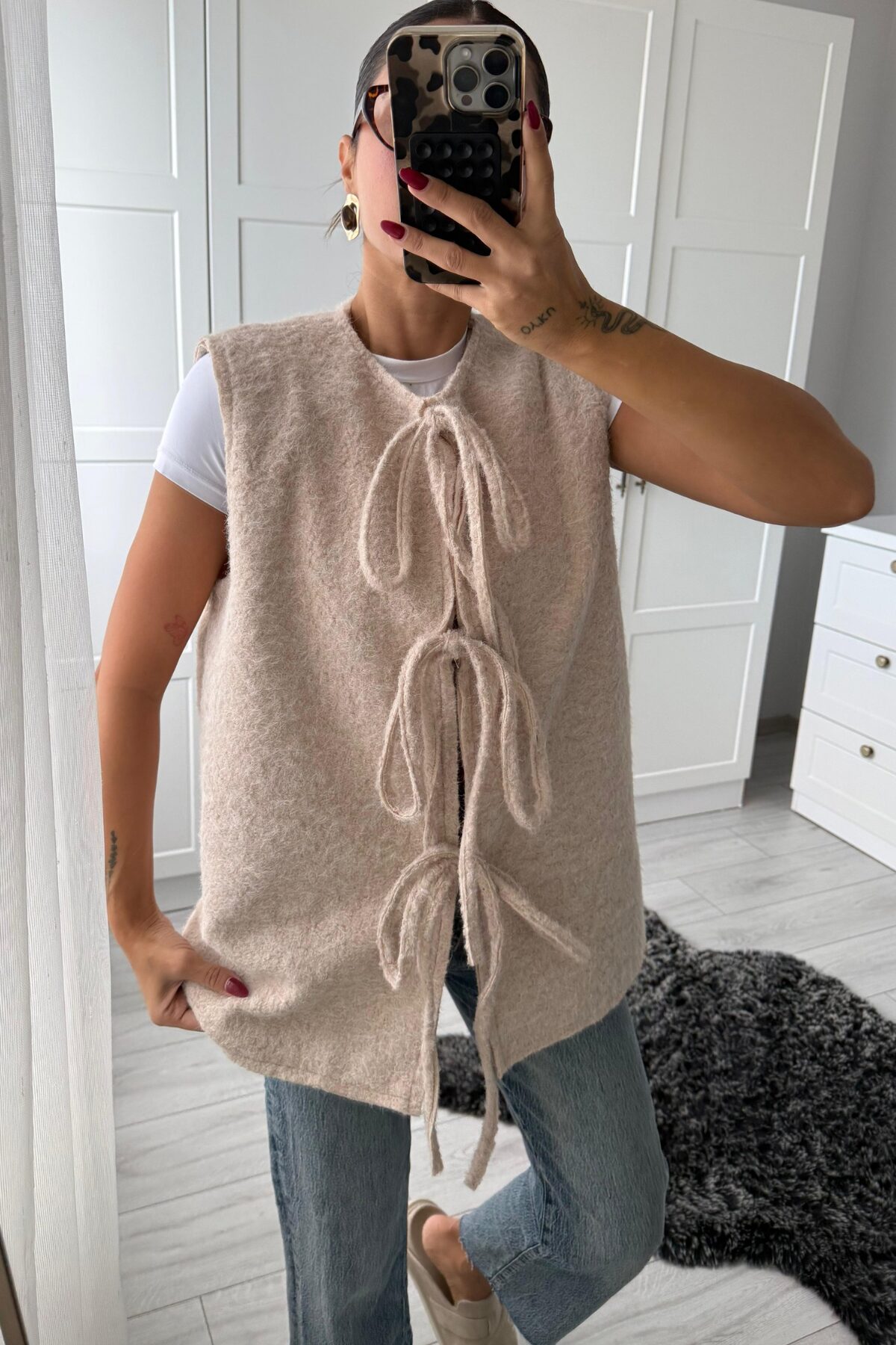 Önden Bağlamalı Kırçıllı Yelek Taş