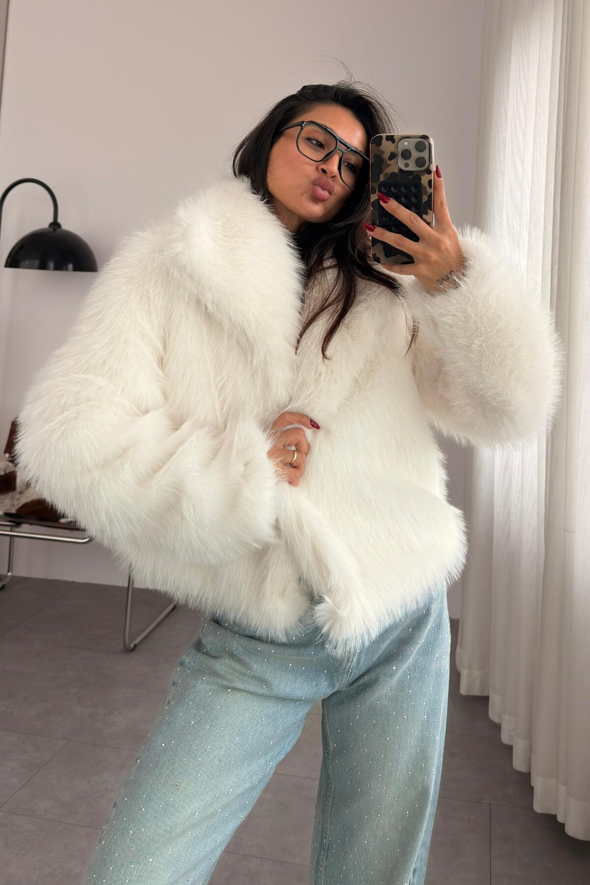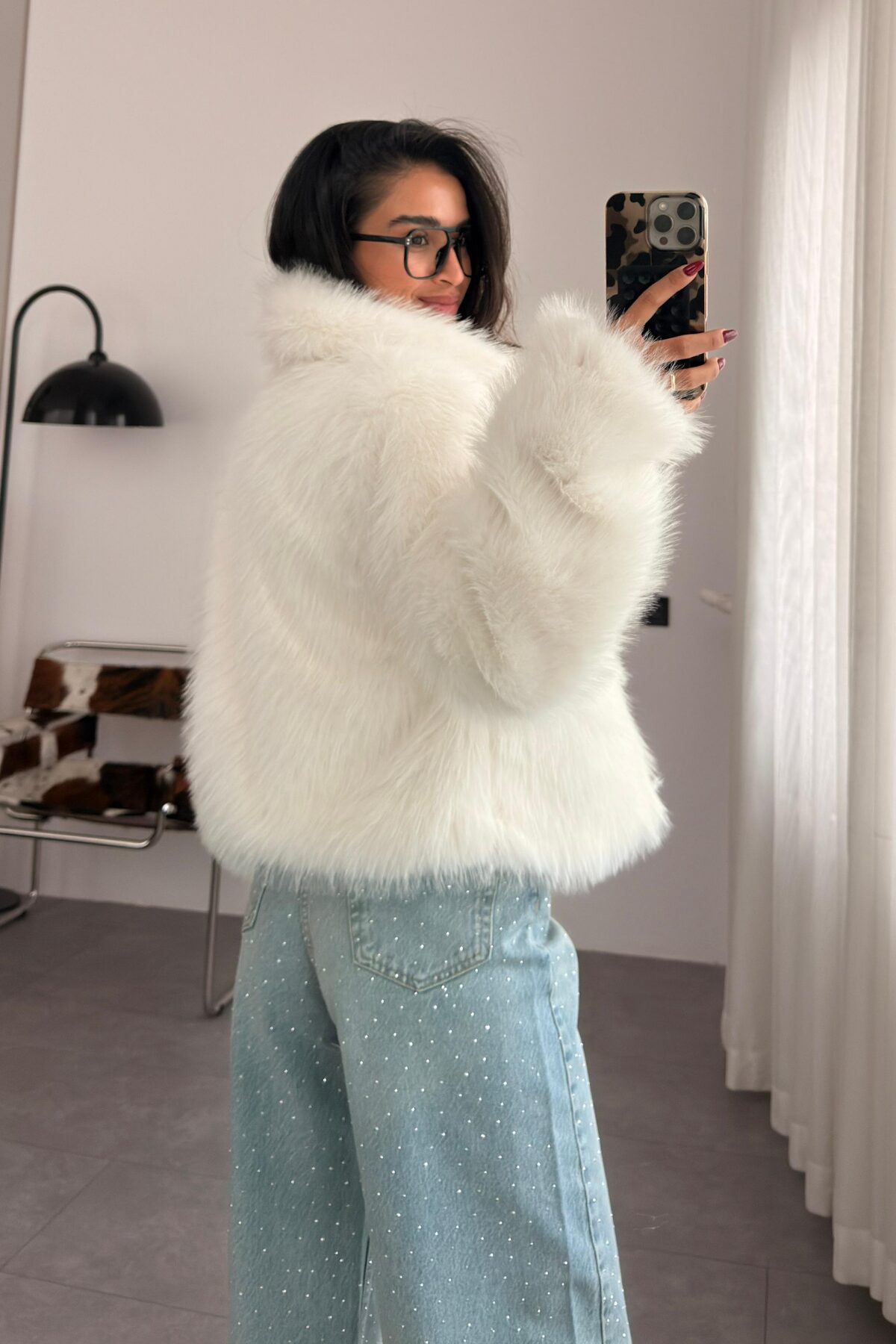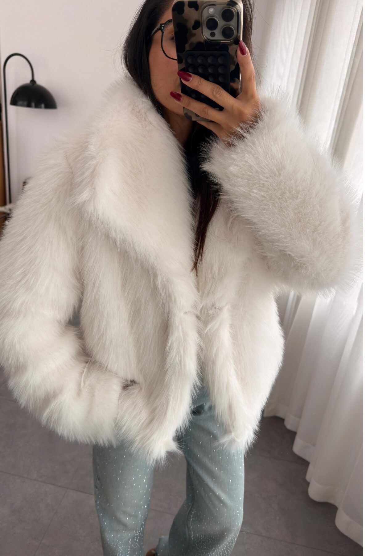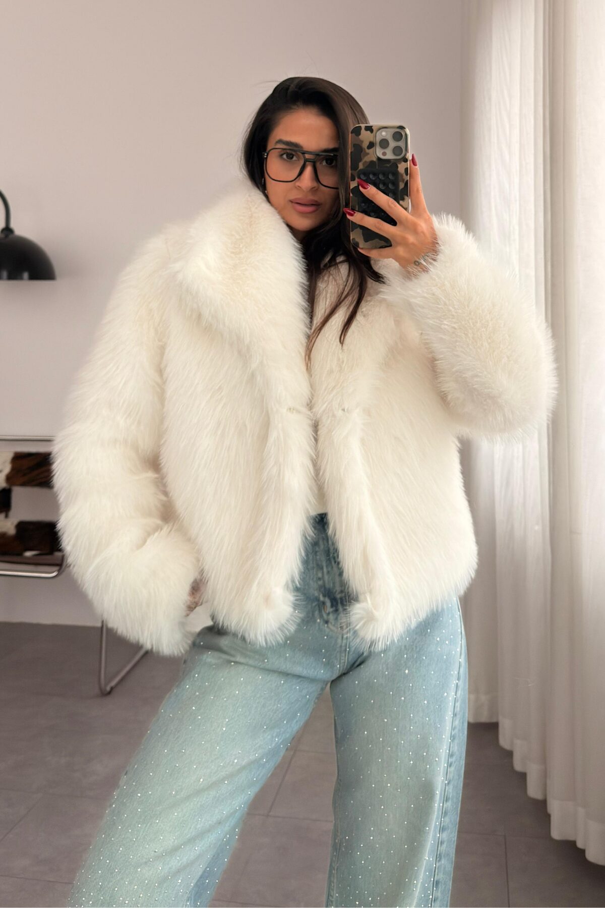 Suni Kürk Ceket Beyaz