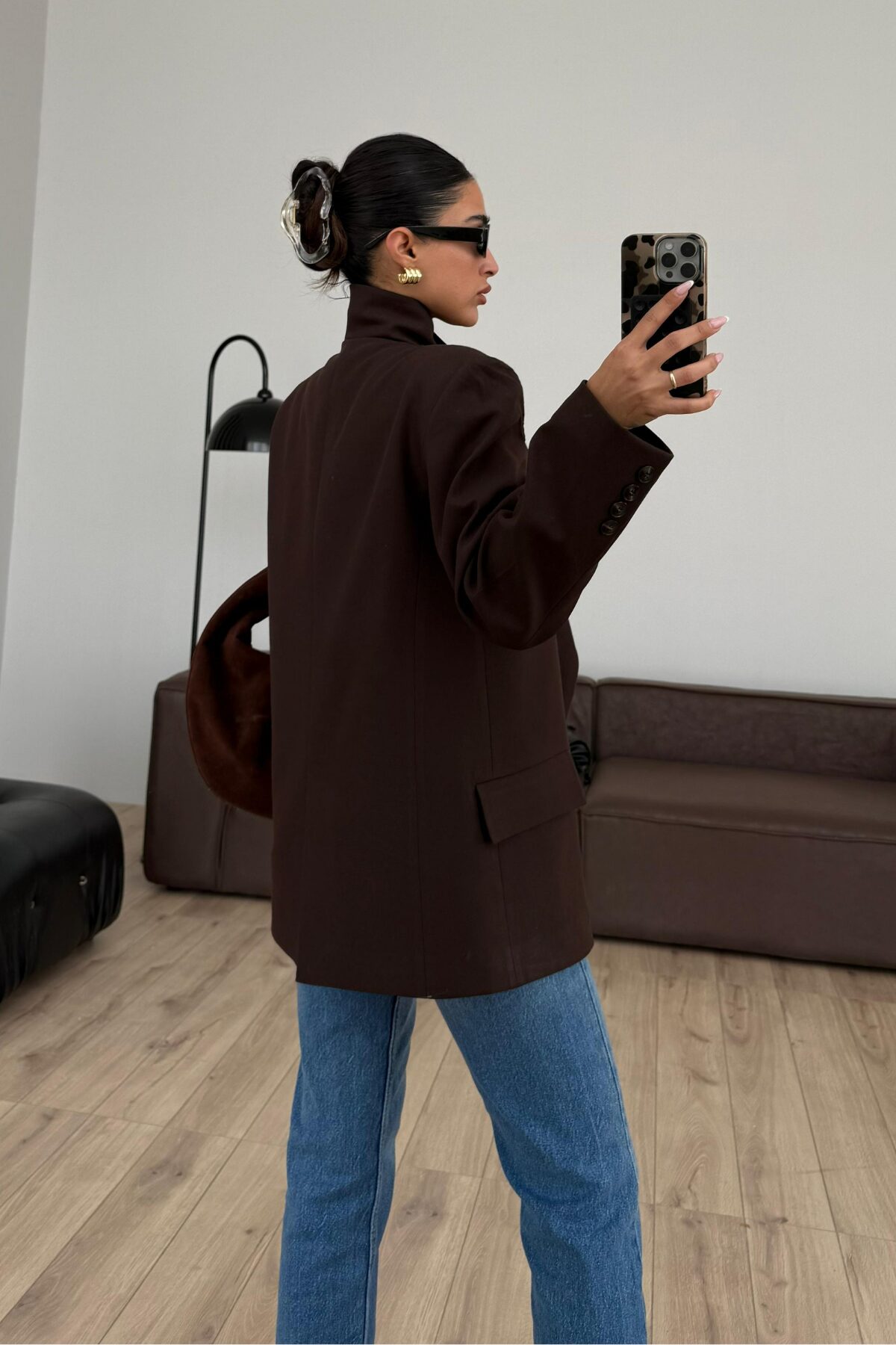 Tek Düğmeli Dik Yakalı Ceket Acı Kahve