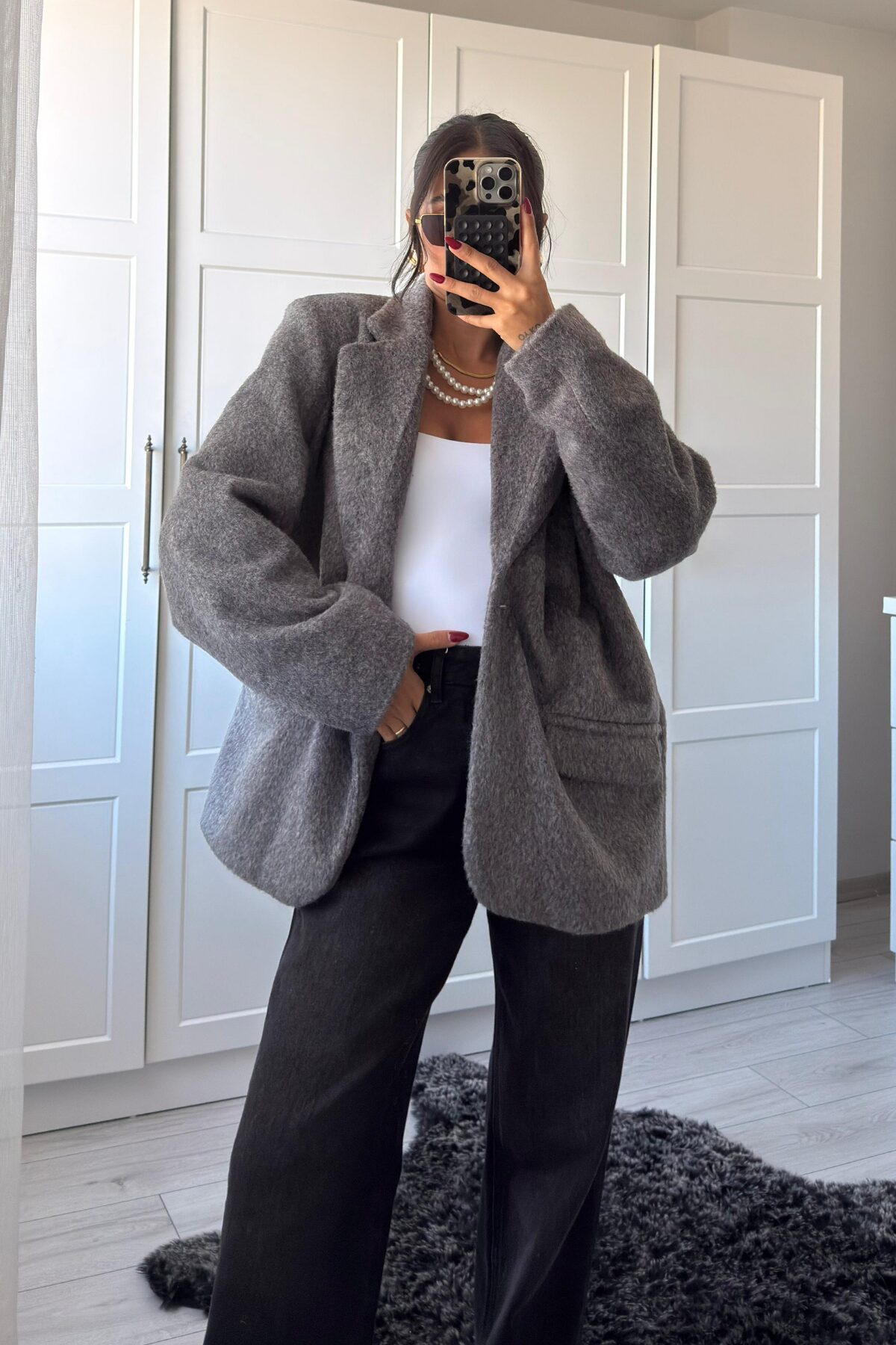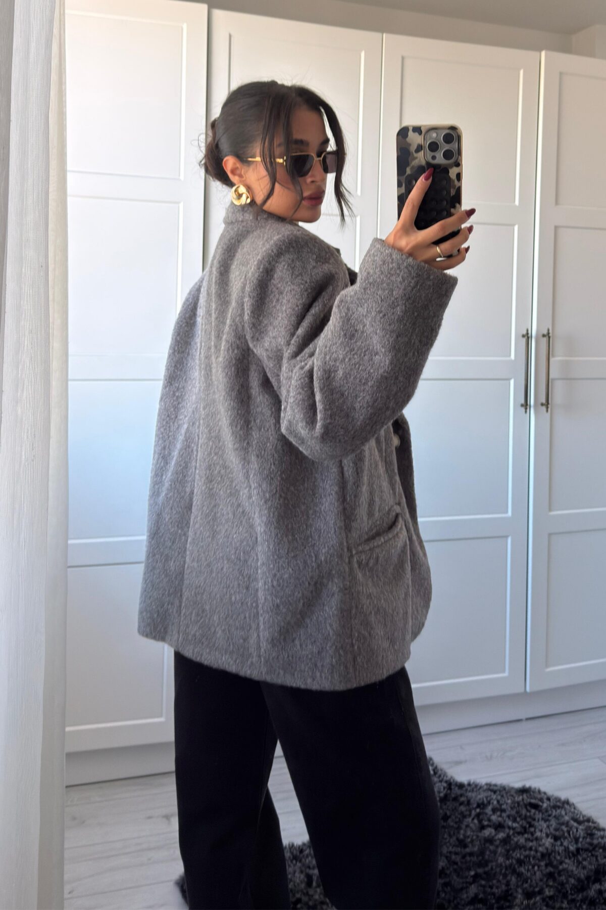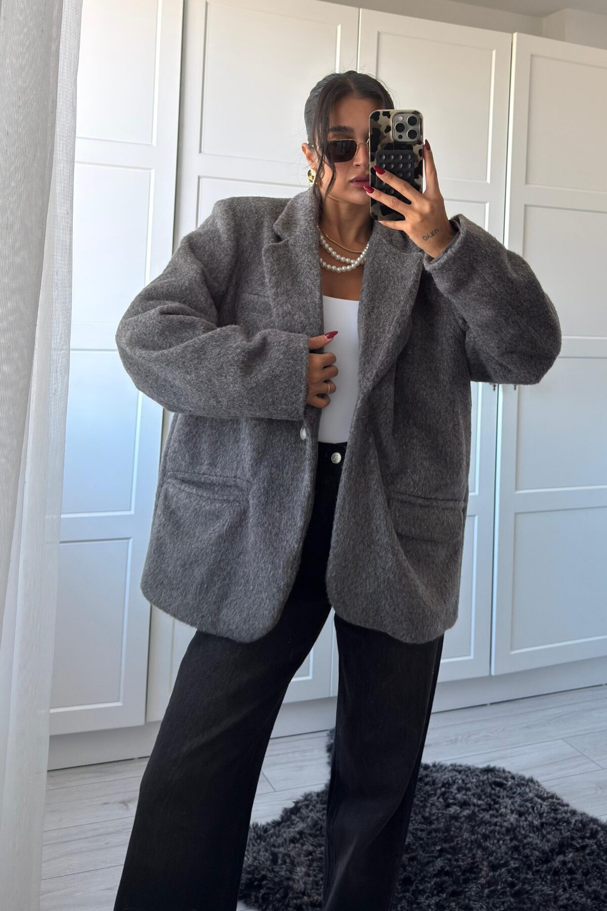 Tek Düğmeli Yumuşak Kaşe Ceket Antrasit