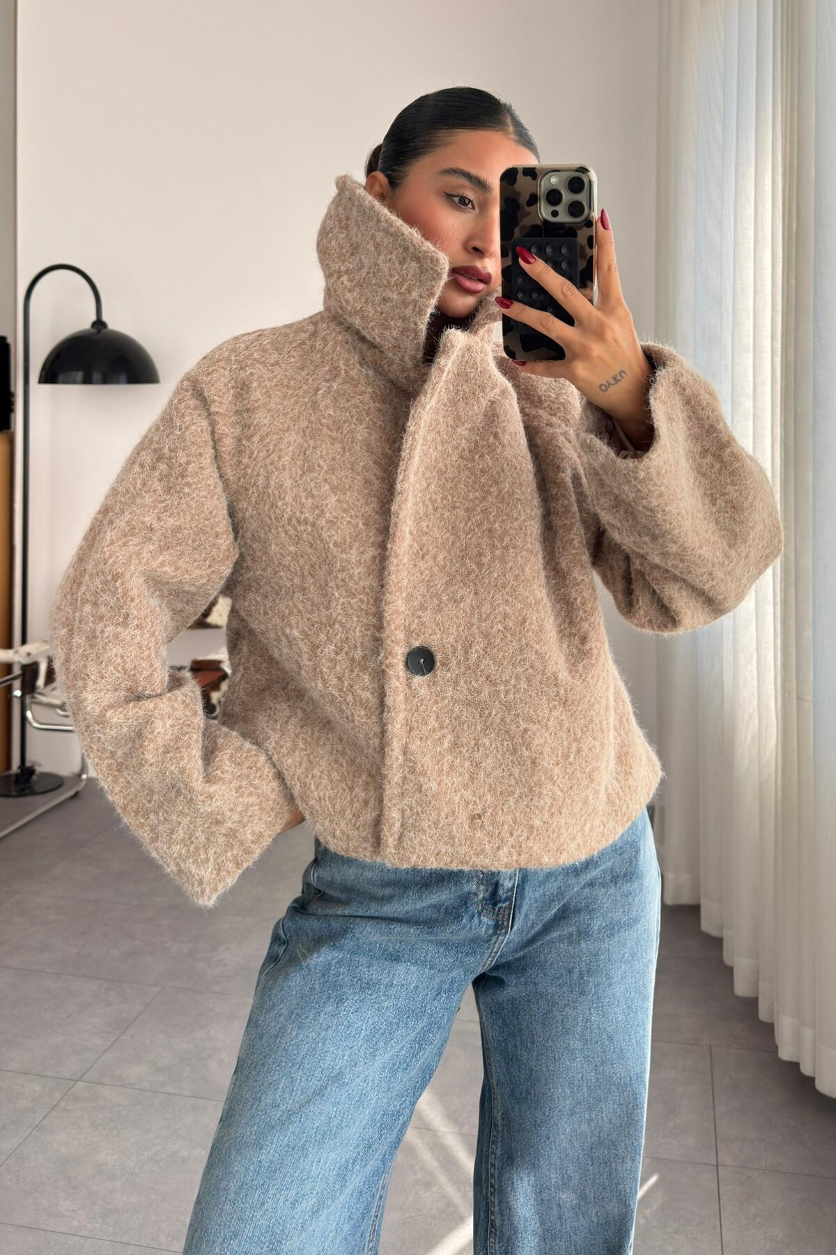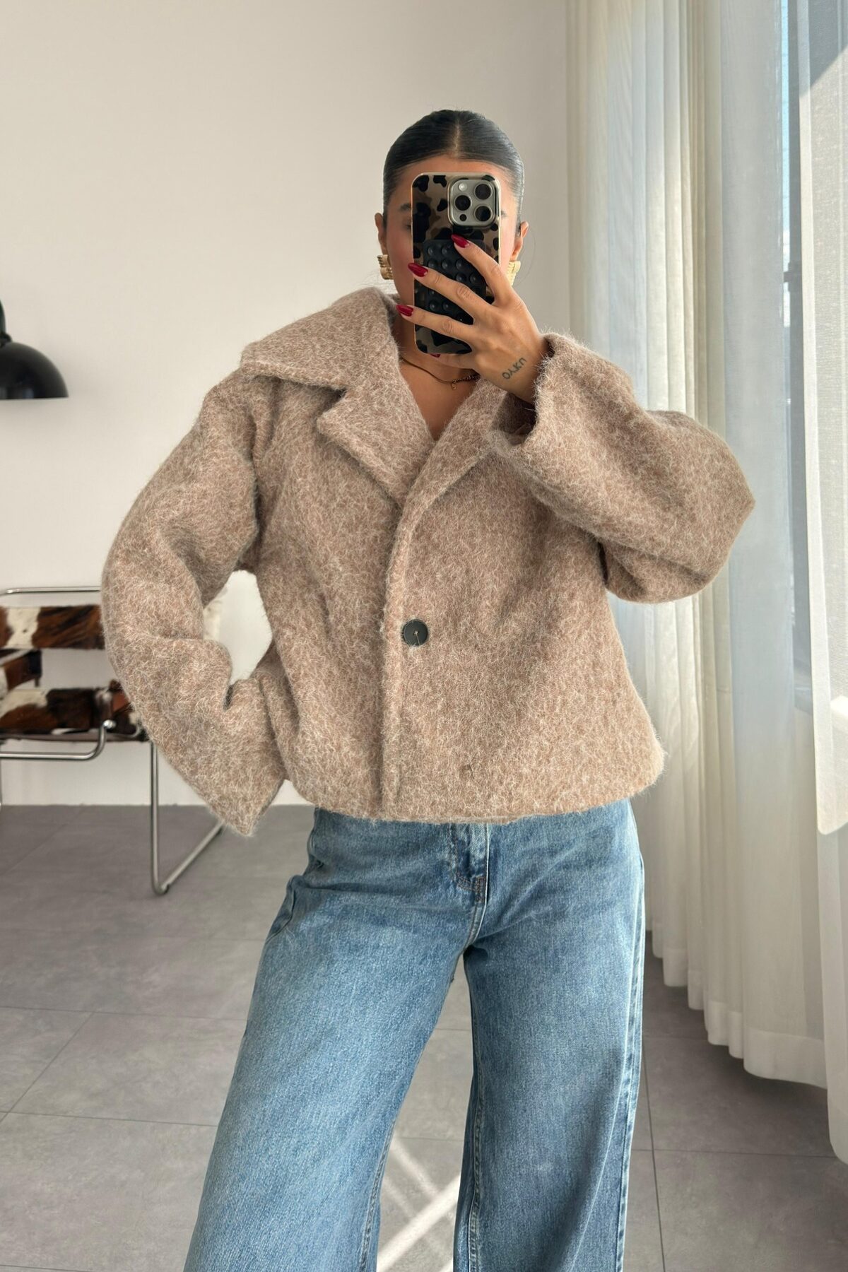 Winer Tek Düğmeli Kırçıllı Ceket Açık Kahve