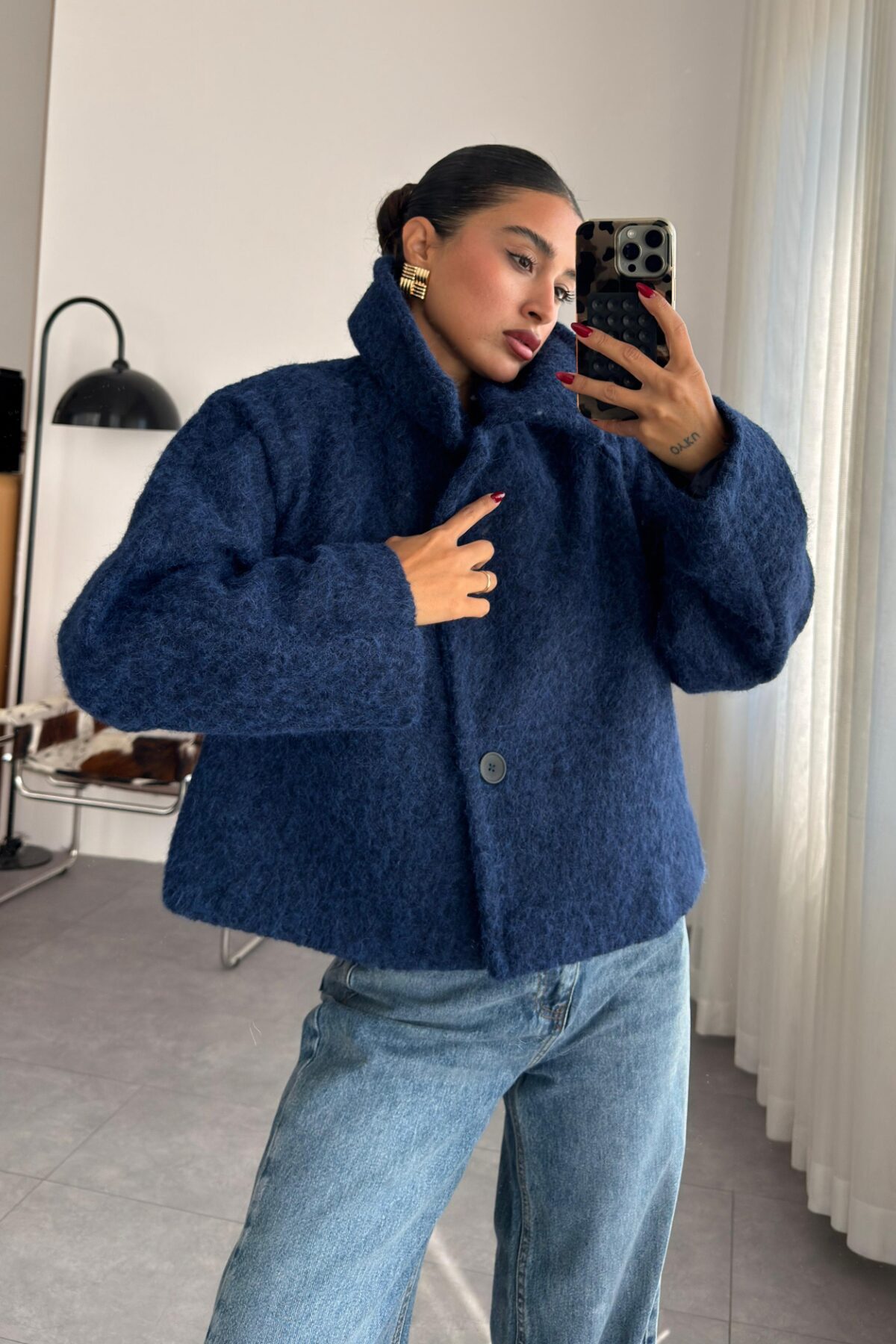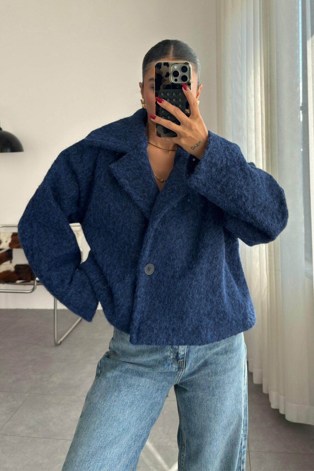 Winer Tek Düğmeli Kırçıllı Ceket Lacivert