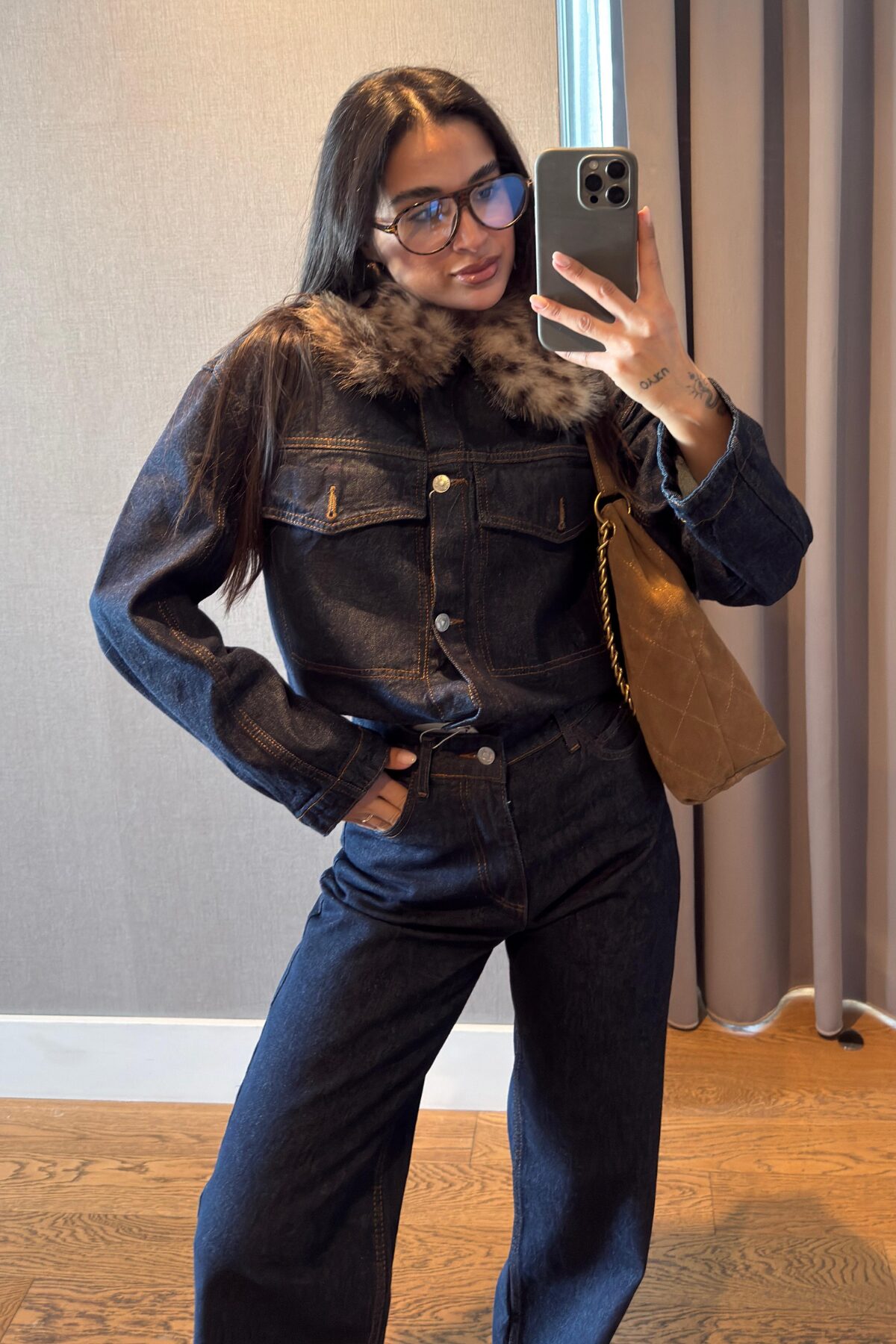 “Yakası Kürklü Kısa Denim Ceket Lacivert” için yorum yapan ilk kişi siz olun
