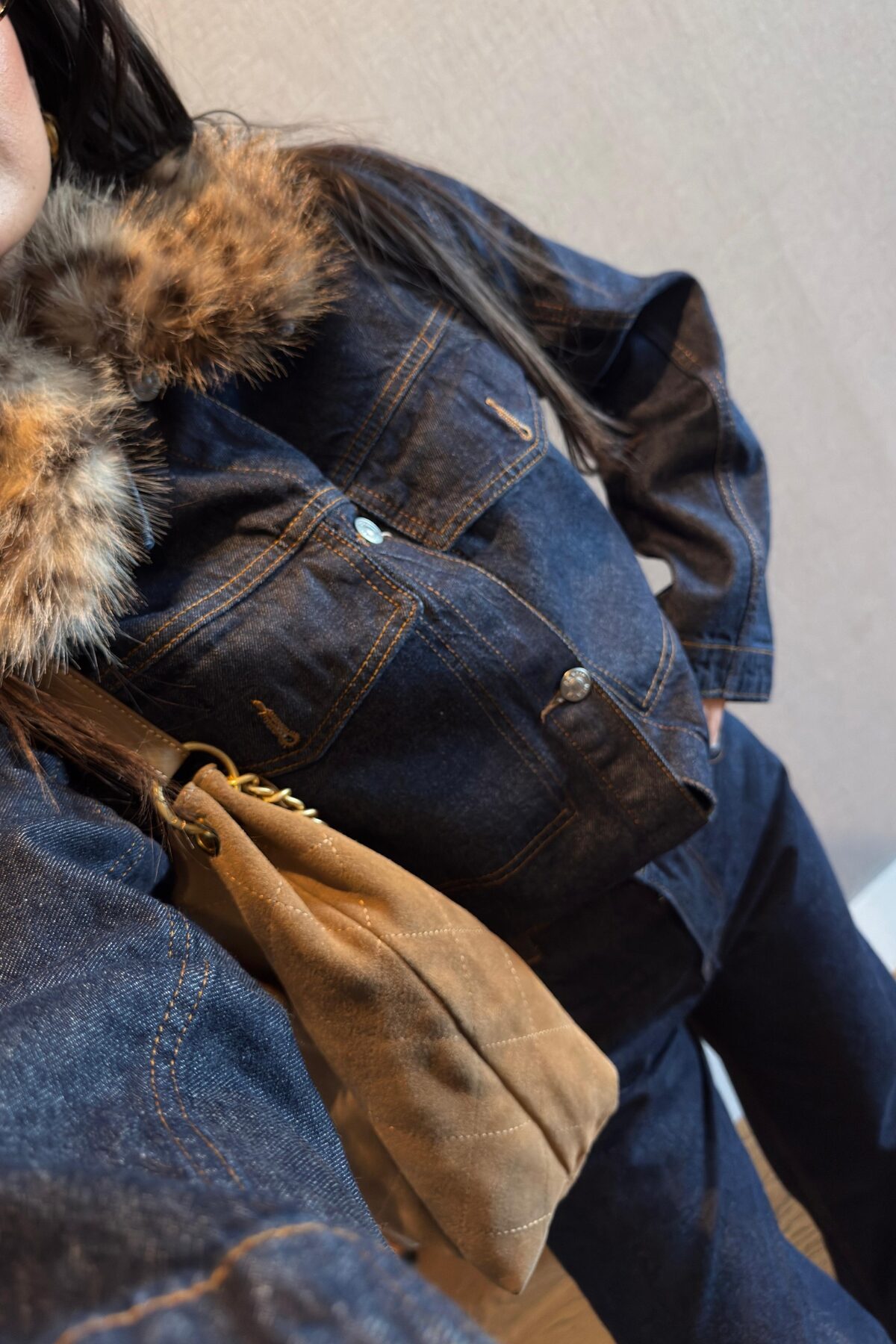Yakası Kürklü Kısa Denim Ceket Lacivert