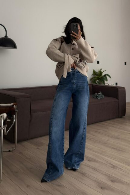 Paçası Yırtık Ballon Mavi Yıkamalı Jean